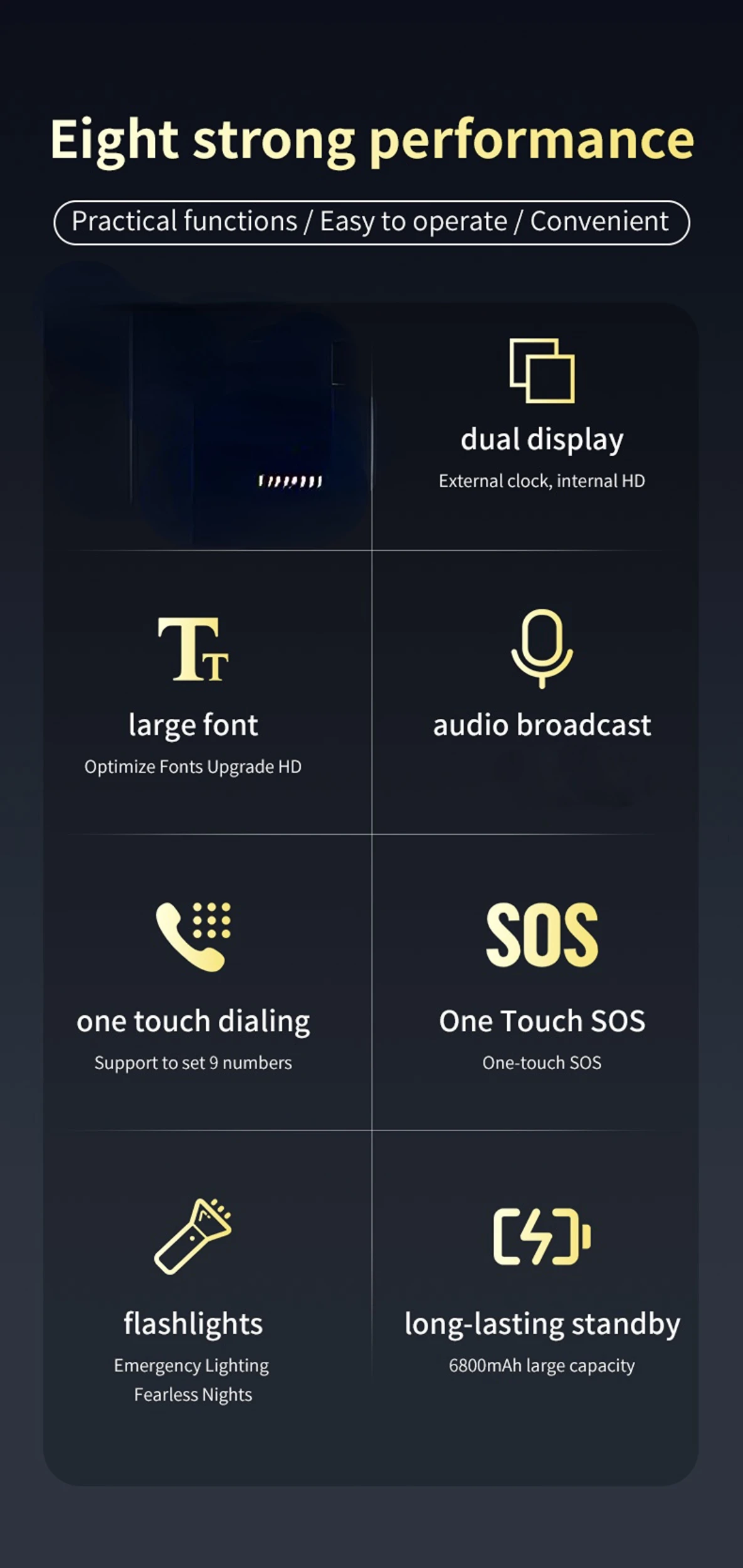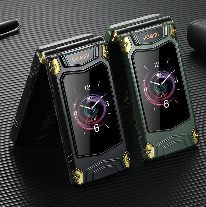 2G Outdoor Folding Senior Phone With Strong Battery Two Big Display Dual Sim Large Button SOS Key Speed Dial Loud Voice Phone