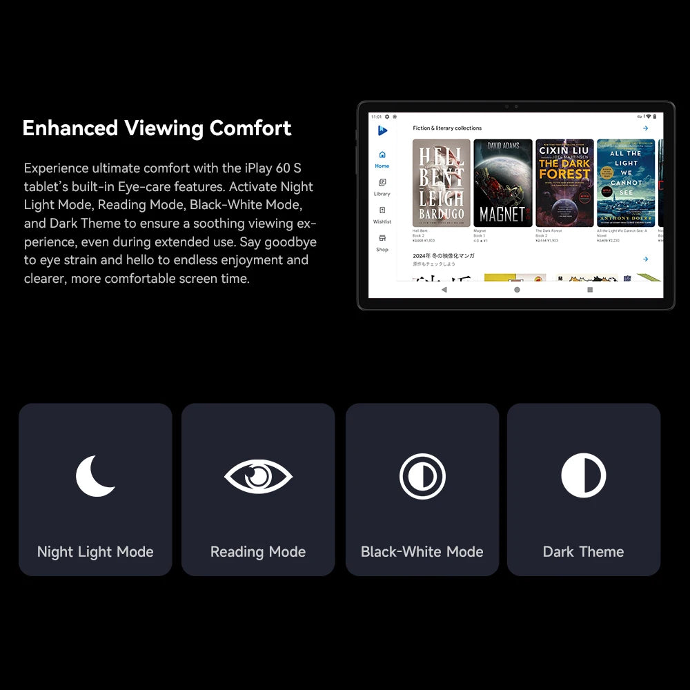 Alldocube iplay 60S 4G-LTE/WiFi Version 10.1" Tablet 4GB+8GB RAM 128GB ROM Android 14 OS 6200mAh Big Battery WiFi 6