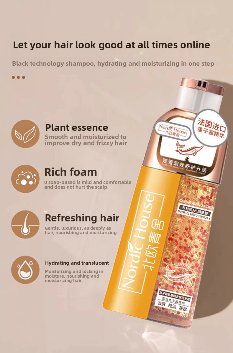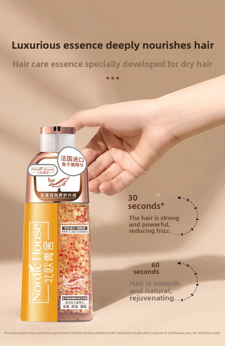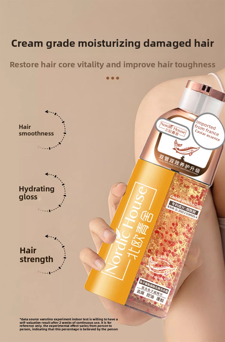 Caviar Essence: Enriched with caviar extract for deep nourishment and hair repair.