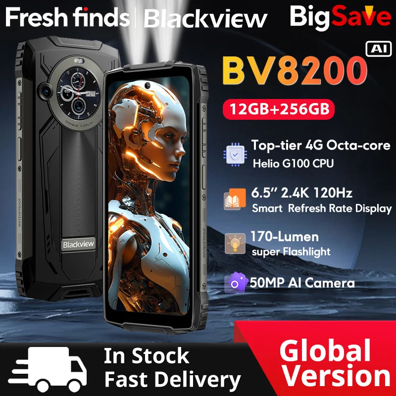 Every adventure deserves a fearless companion-meet the Blackview BV8200. With an ultra-bright flashlight, smart secondary display, and slim, rugged body, it's built to guide your path with effortless control and unstoppable power.Revolutionary Smart Secondary Display,1.3-Inch | Power-efficient Secondary Display | 6.5-inch 2.4K FHD+ Ultra-clear Display | Durable CORNING® GORILLA® GLASS 5 | 120Hz Smart Refresh Rate | Five Screen Modes (Reading Mode/Night Light/DarkMode(Enhance&Moderate&Gentle) | Glove Mode 2.0 (8% Increased sensitivity↑) | 170-Lumen Powerful Dual-beam LED Flashlight | AI Photo Editor | 50MP Samsung® ISOCELL GN5 AI Camera +32MP Front Camera+13MP Ultra-Wide & Ultra-Macro Camera | 2K Ultra-clear Video Recording |Underwater Camera |Best 4G Octa-core MediaTek Helio G100|256GB ROM + 2TB TF Card Expansion |8800mAh Mega Battery |45W Fast Charging | Smart-PA Box Speaker | Top-tier MIL-SPEC- 810H Certified |Leading IP68 & IP69K Waterproofness |Unstoppable in Extreme Temperatures | All-new DokeOS 4.0 Based on Android 14Why Choose Blackview BV8200?