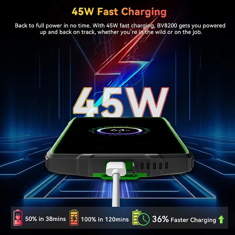 Blackview BV8200 Rugged phone 6.49" 2.4K 120Hz Display Helio G100 12GB 256GB NFC Flashlight Android 14 CellPhone