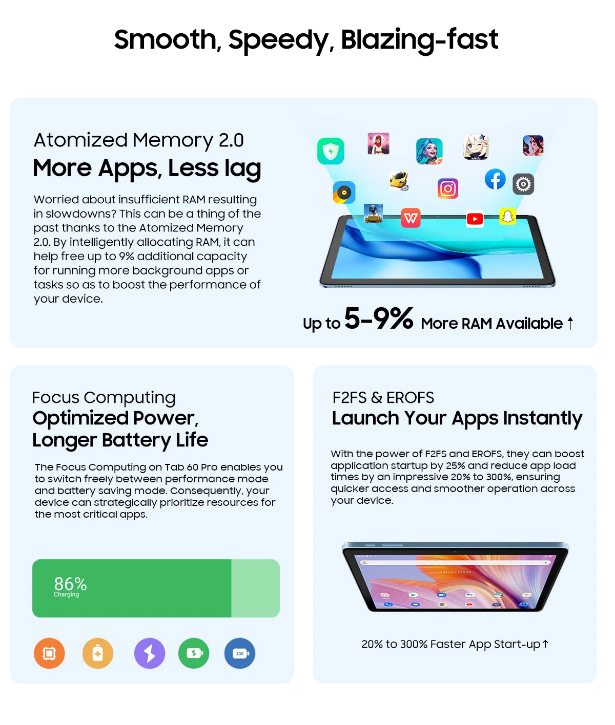 Screen : 10.1 inch; HD+ IPS; 60Hz Smart Refresh Rate