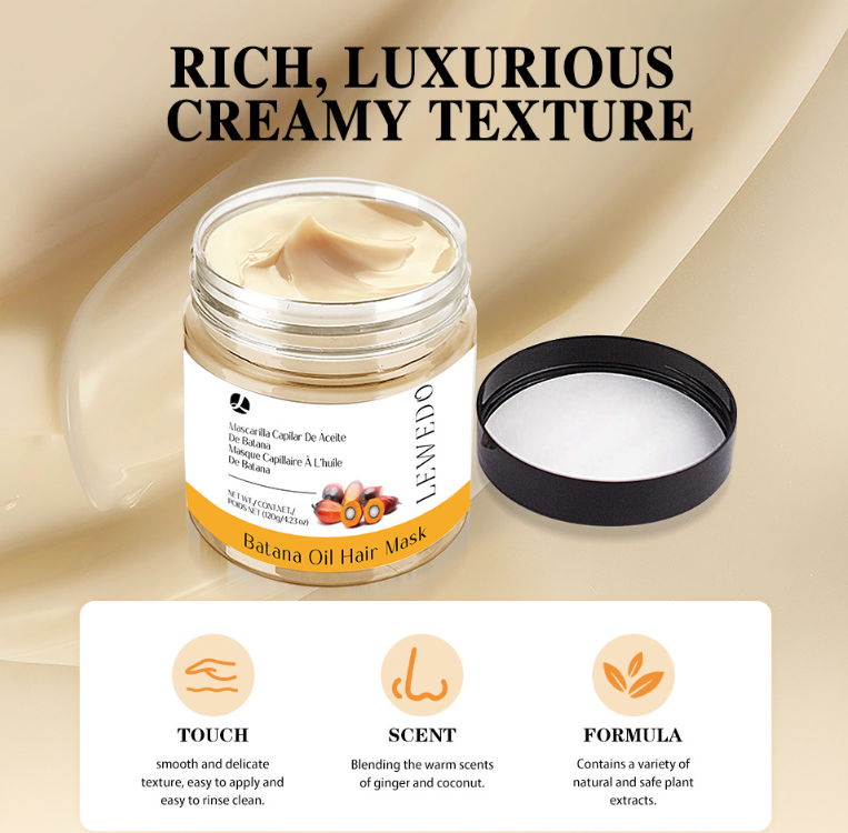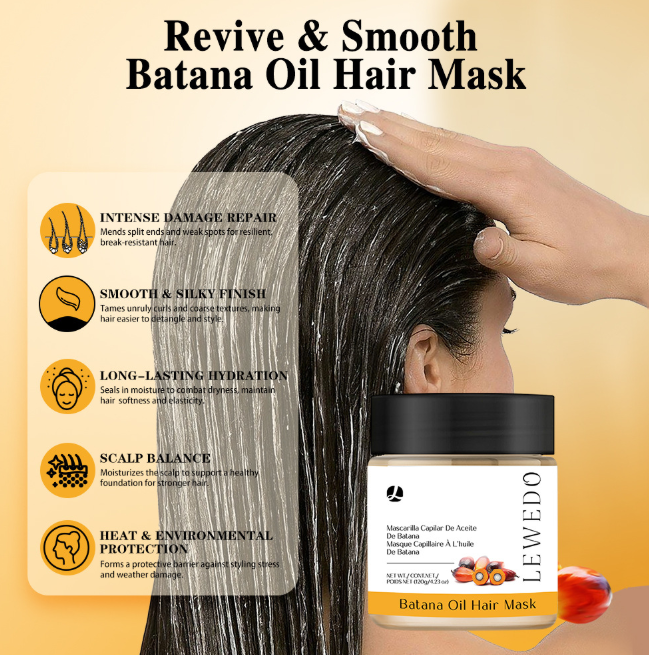 Material: Hair mask formula with batana oil and butter.
