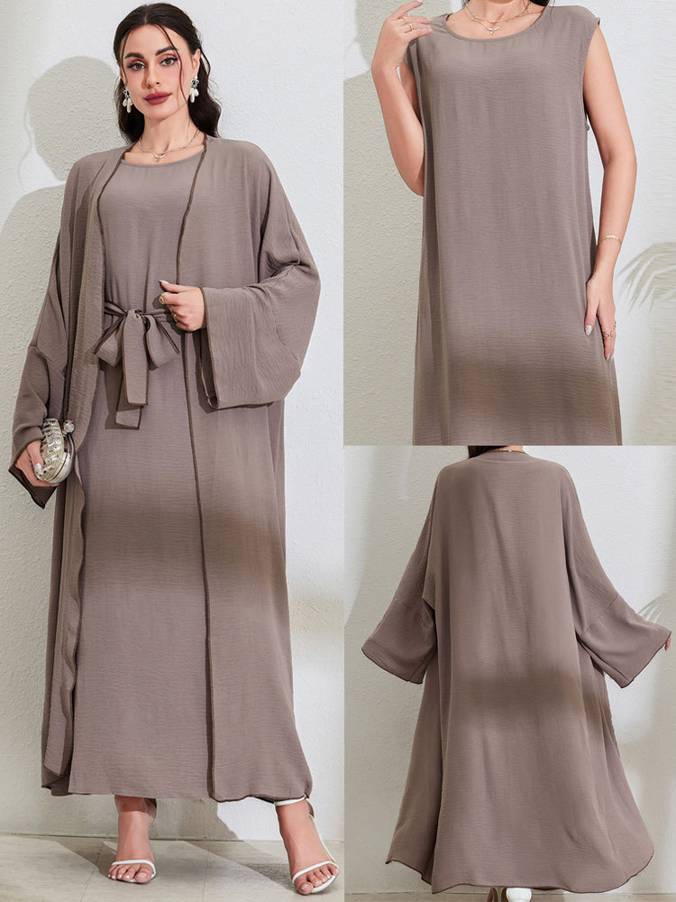 Elegant Design: Fashionable and elegant cardigan dress with a belt, perfect for a sophisticated look.
