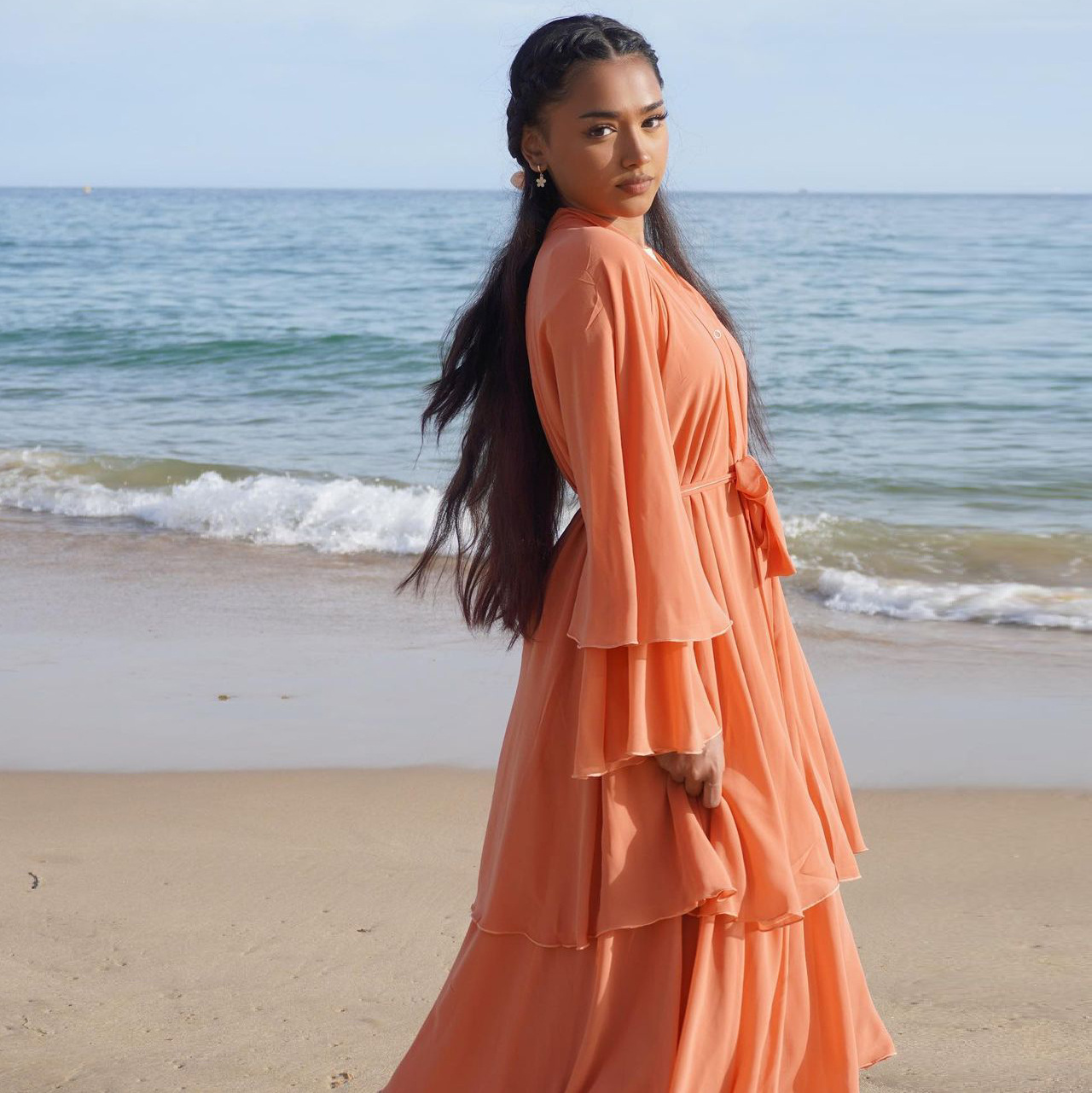 Elegant Design: Stylish and elegant chiffon dress with a flowing silhouette.