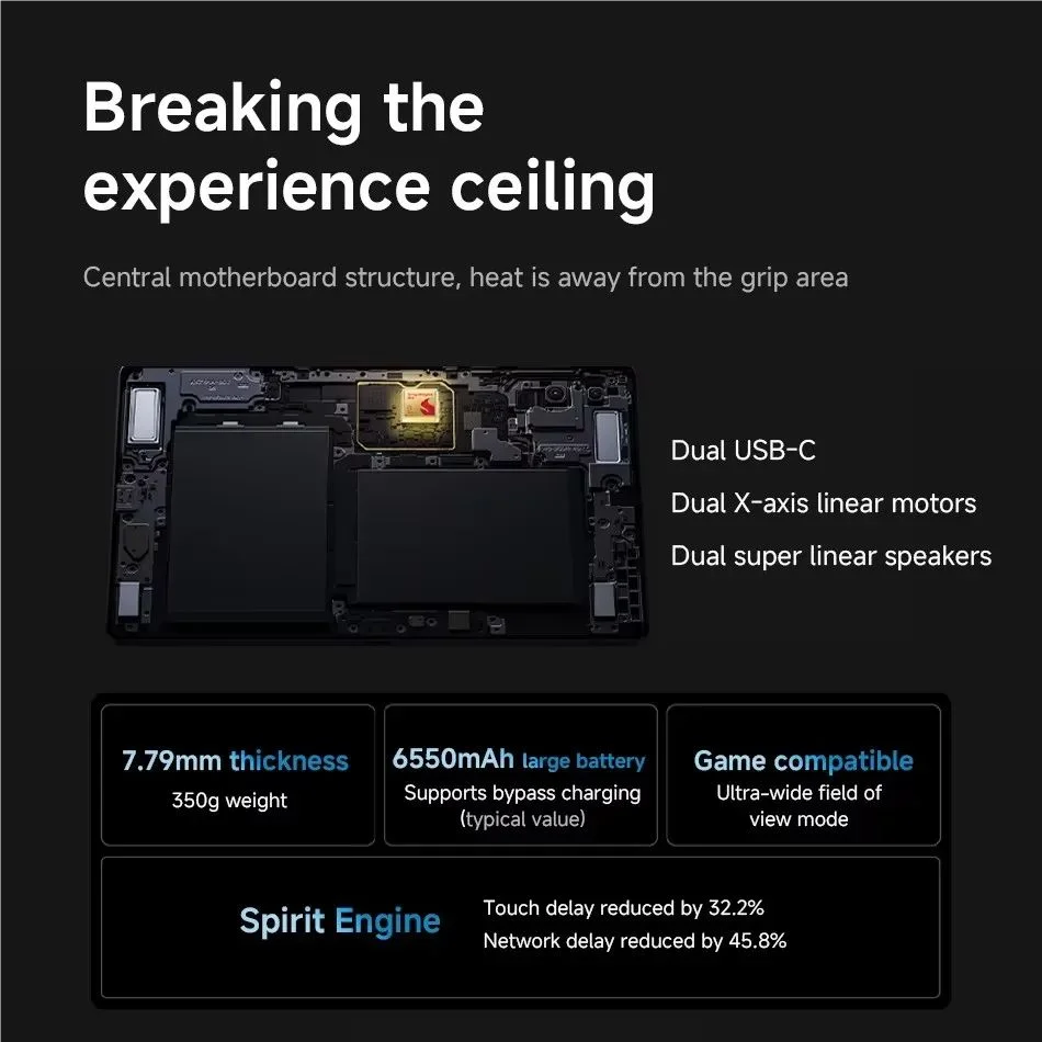 Other Features: WIFI /Bluetooth / Face Recognition/ TUV low Blue Light Certification/ DOLBY ATMOS / Dual x-axis linear motor / gravity sensing / Dual Type-C Interface (Charging and listening to music can be done simultaneously)