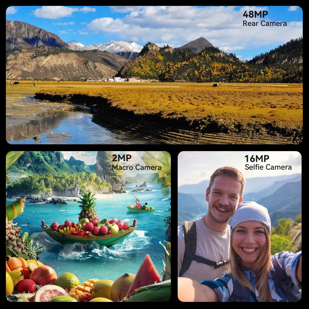 Includes a 48MP PDAF main camera, a 2MP macro camera, and a sensor, with a 1A flash LED to capture perfect shots in any lighting condition.