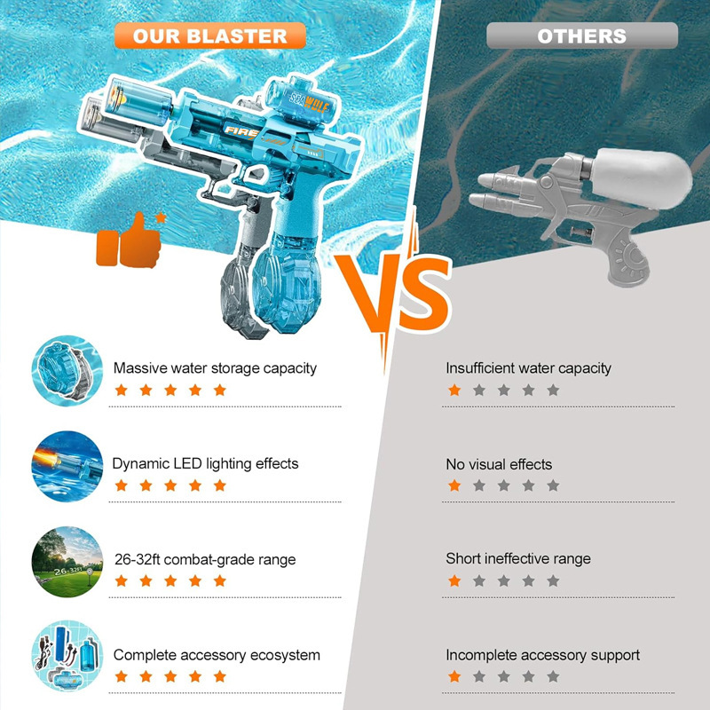 Multi-functional: Features continuous firing, linked re-chamber, and pulse water spray for dynamic use.