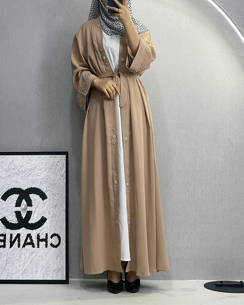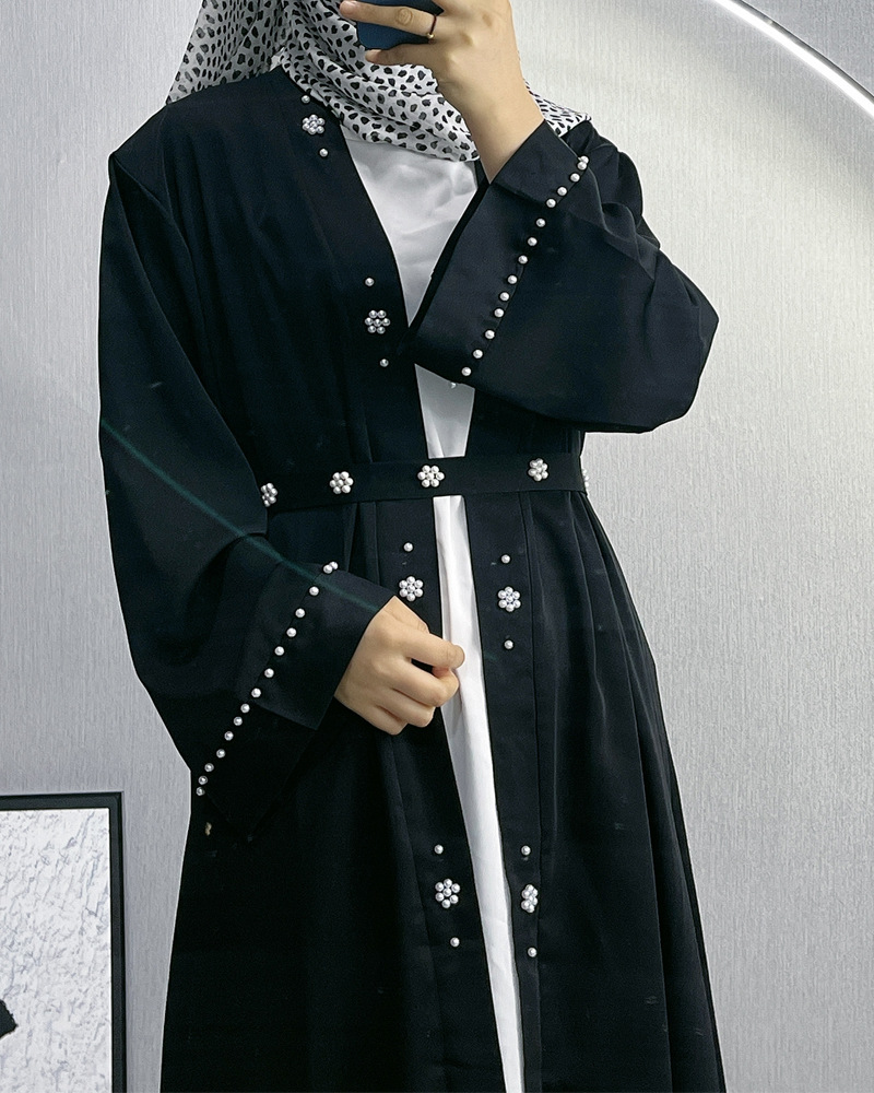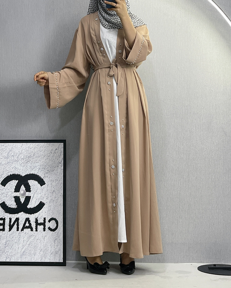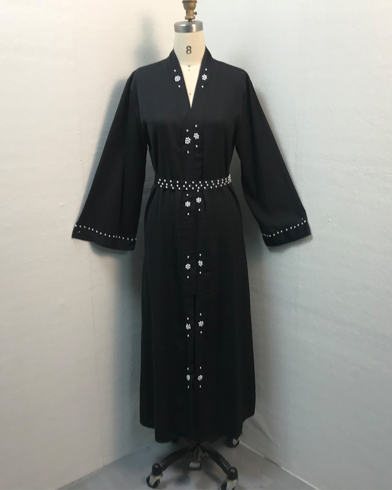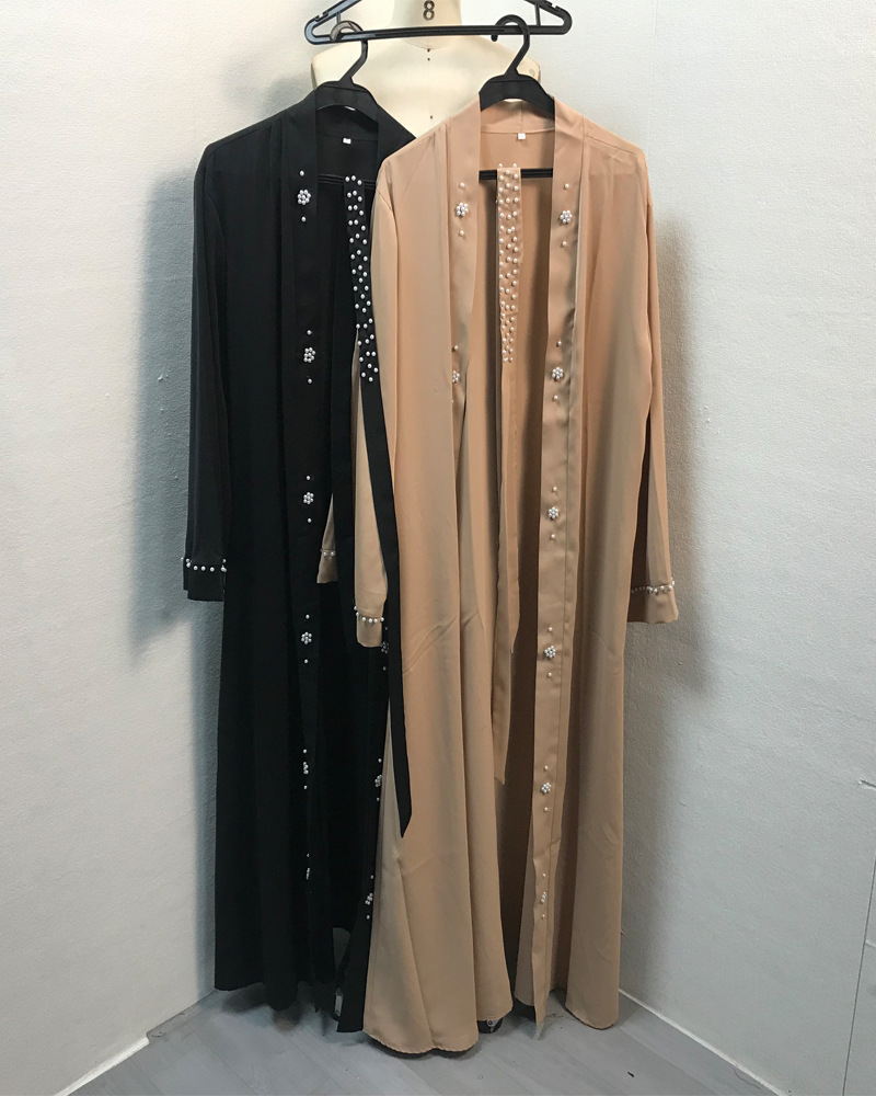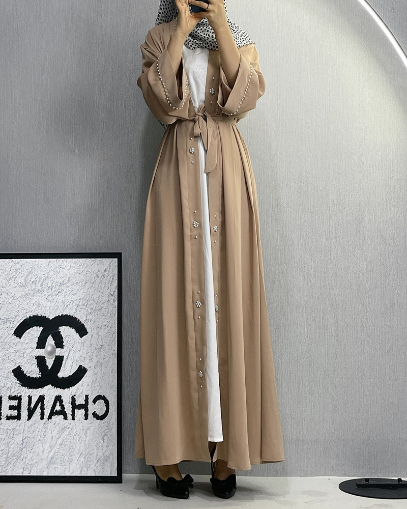 Elegant Design: Fashionable and elegant solid color beaded tie cardigan robe.