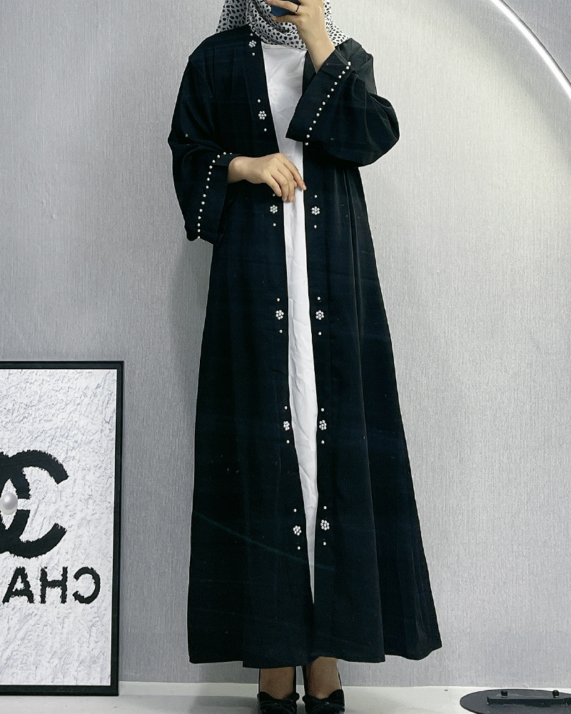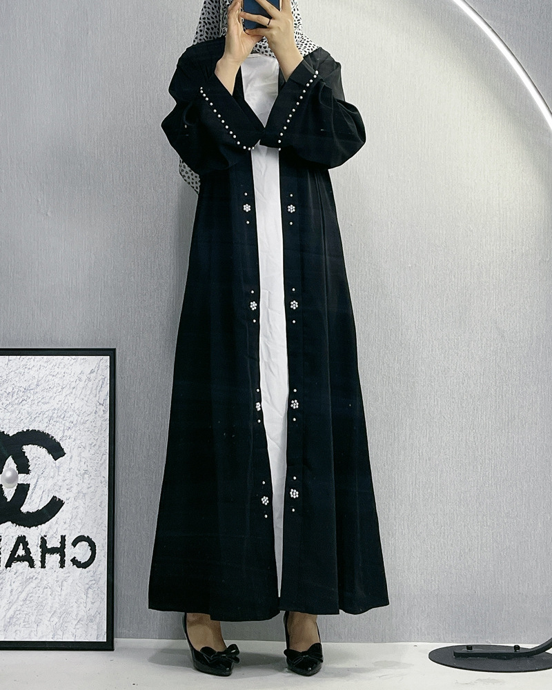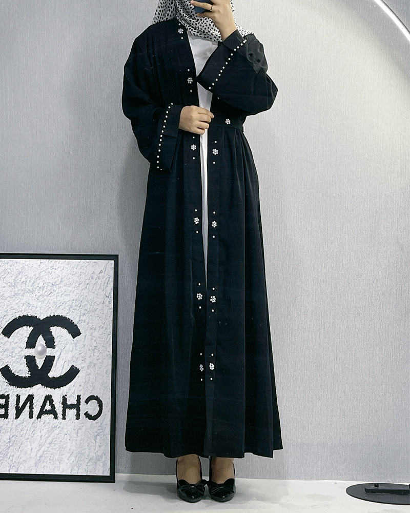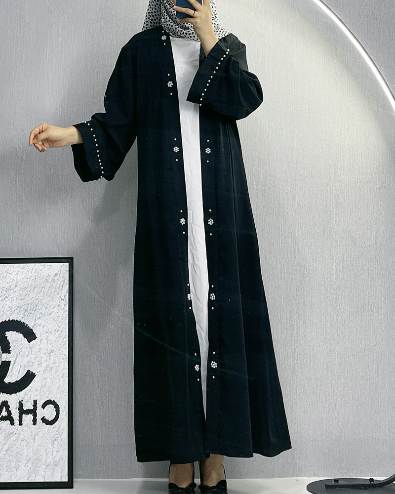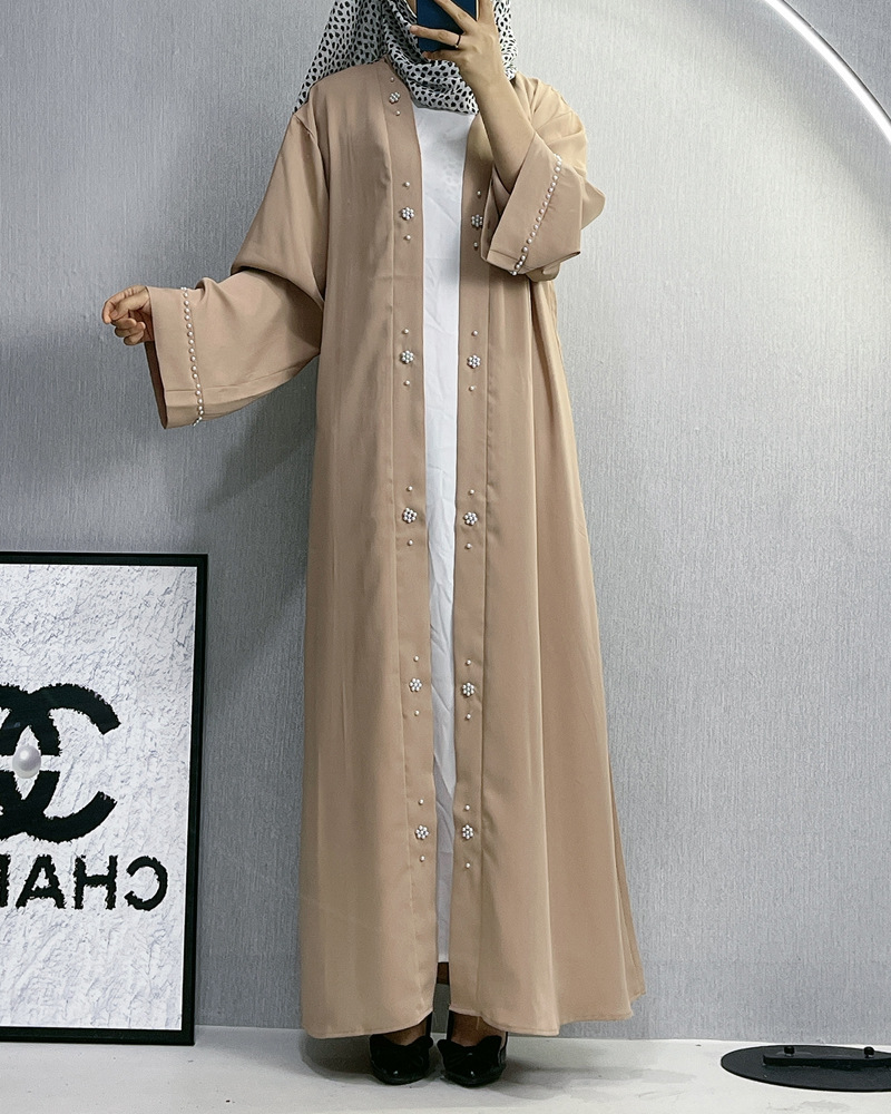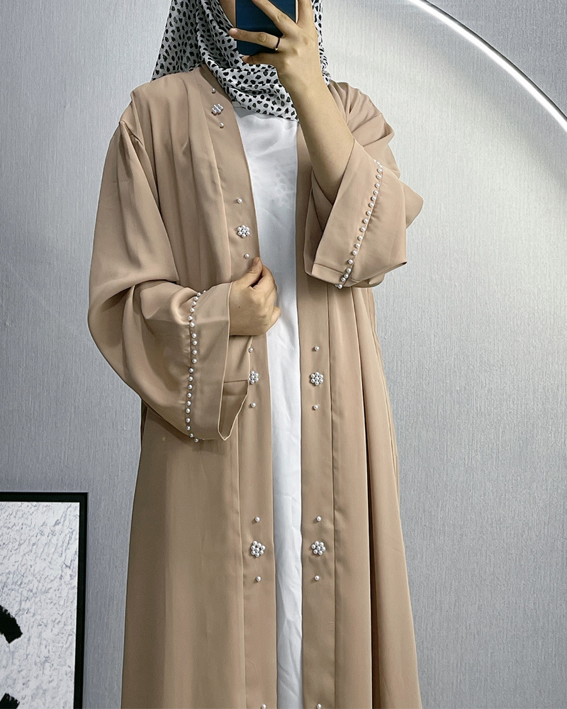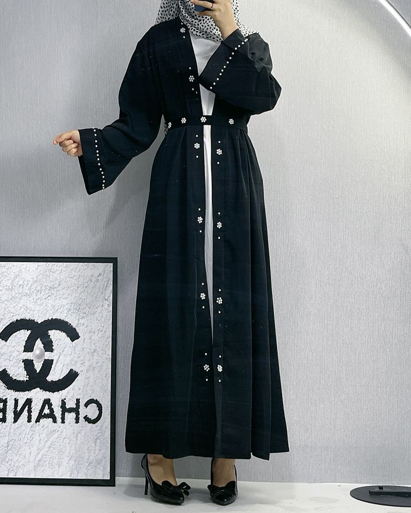 Elegant Design: Fashionable and elegant solid color beaded tie cardigan robe.