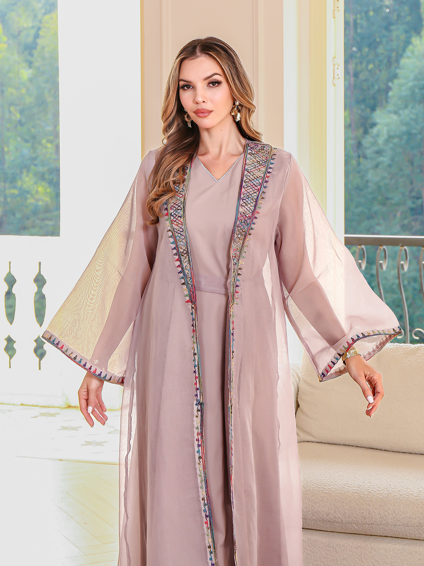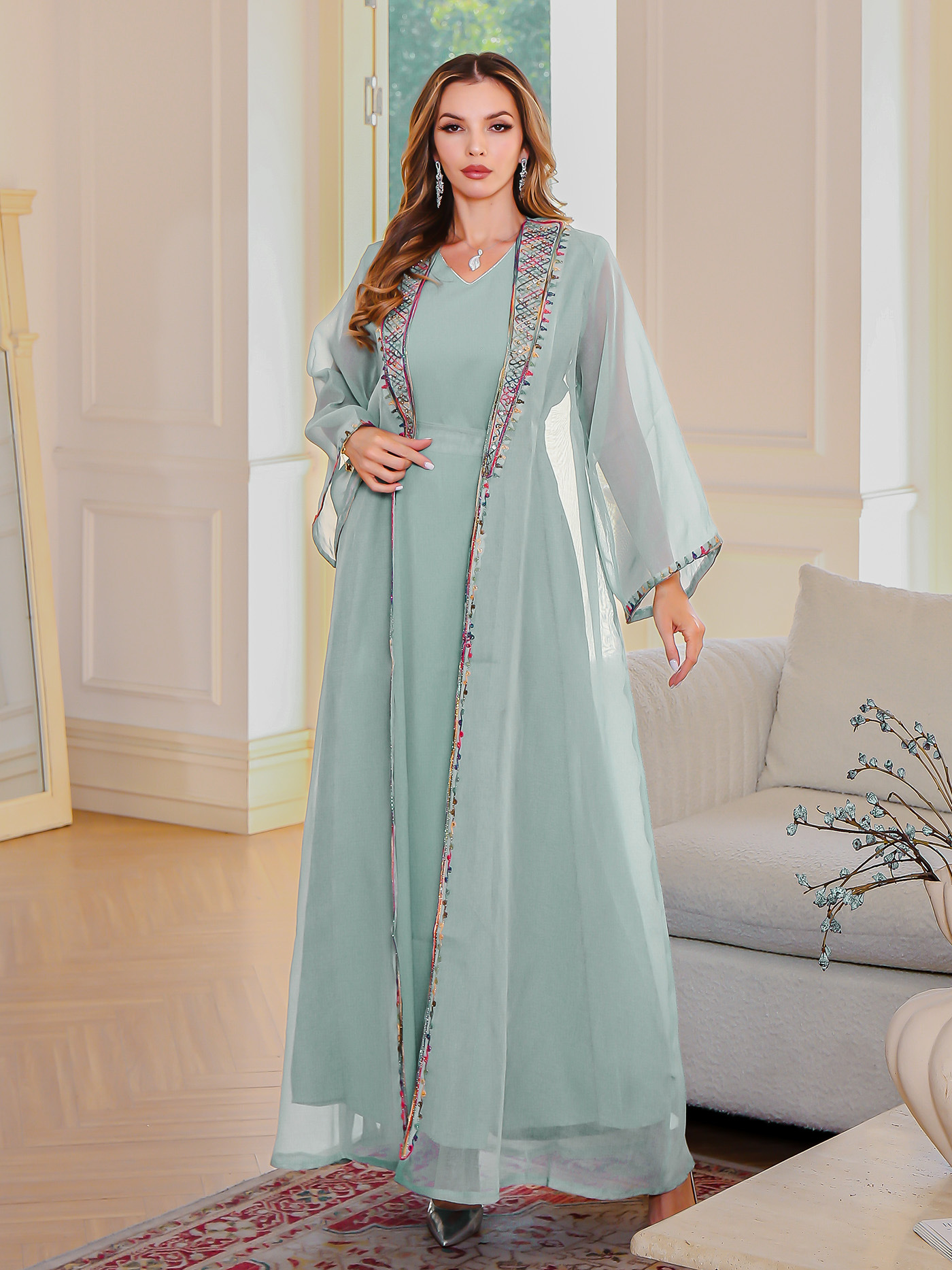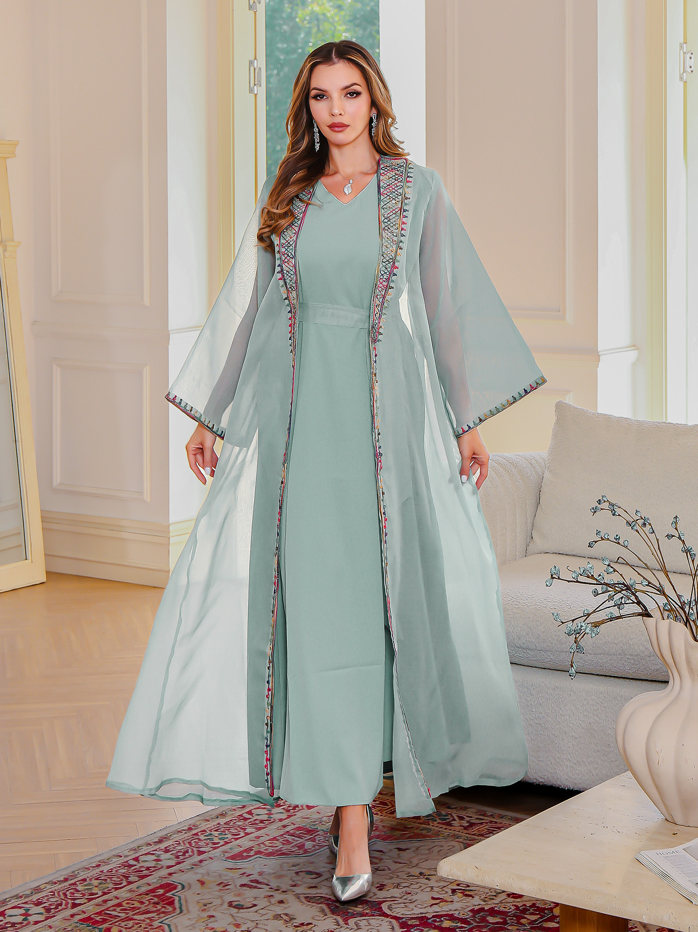 Elegant Design: Two-piece Muslim dress with intricate Middle Eastern embroidery.