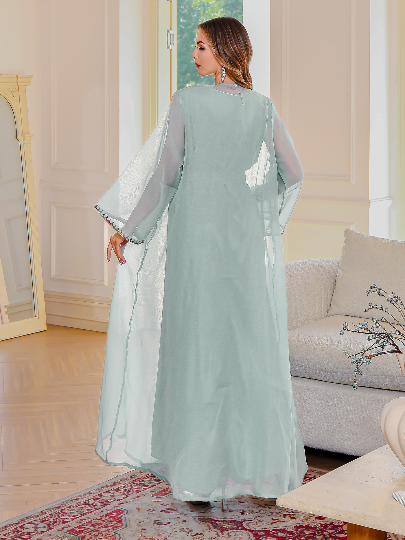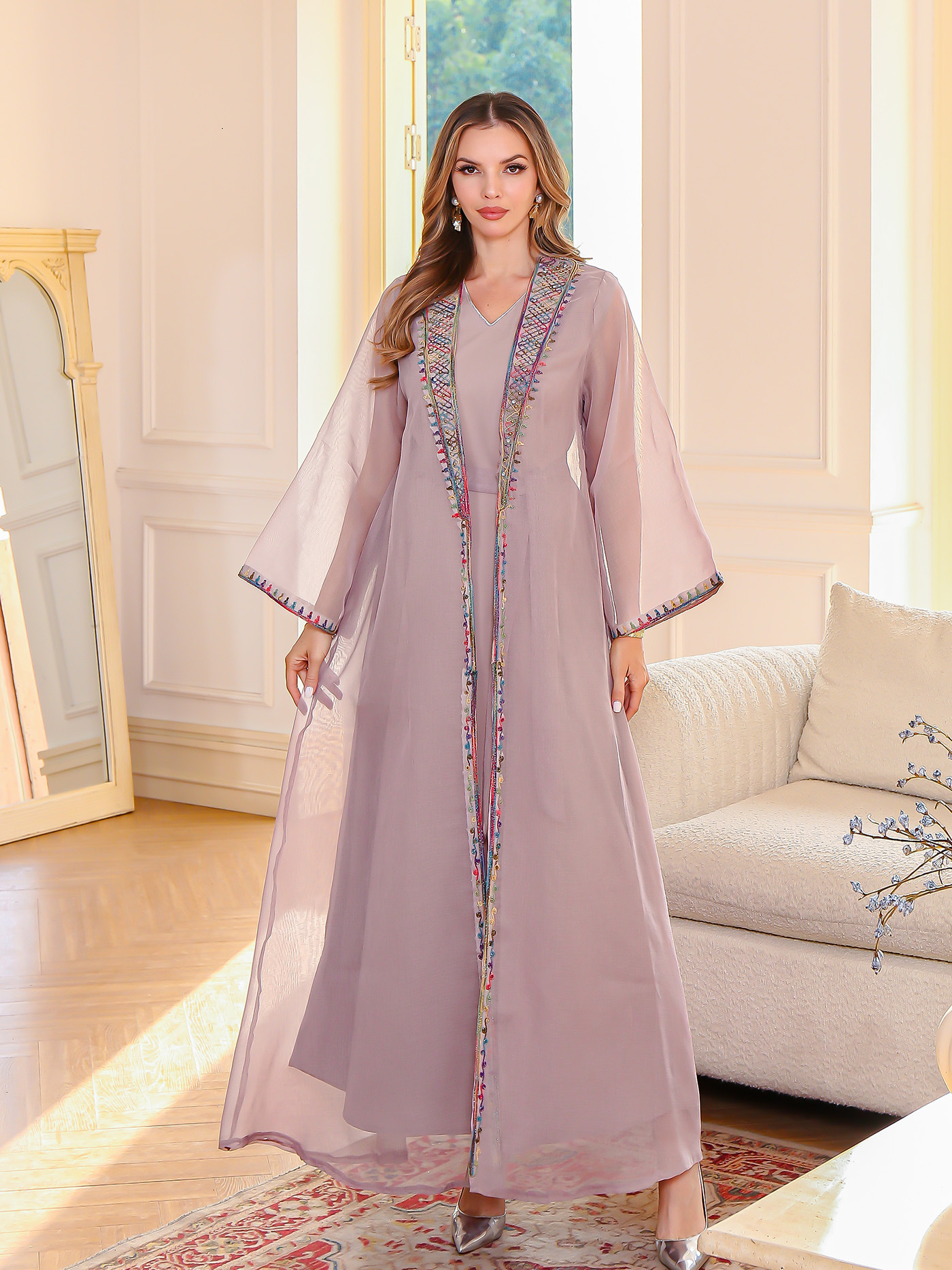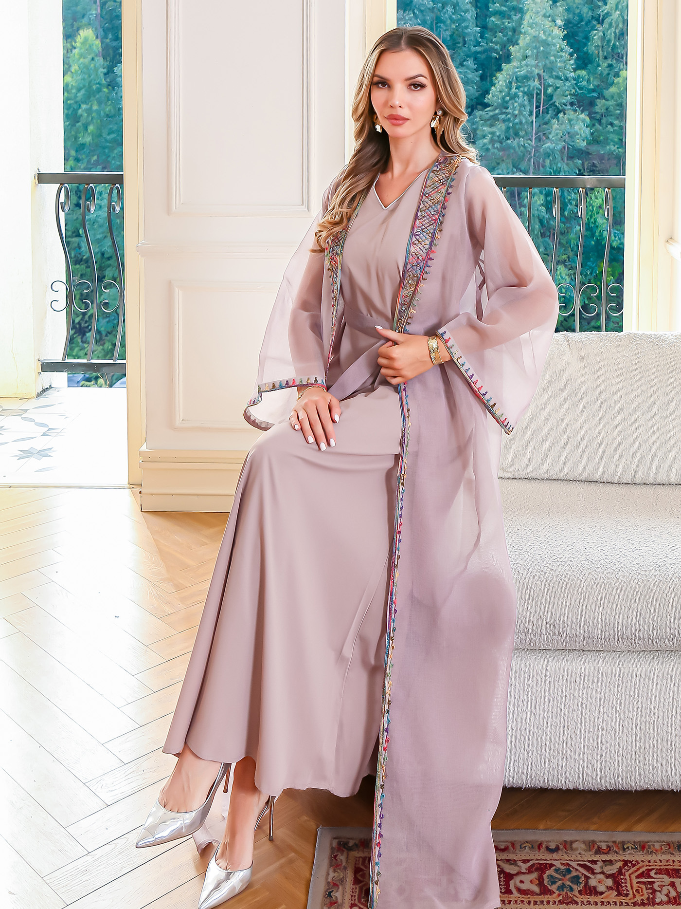 Elegant Design: Two-piece Muslim dress with intricate Middle Eastern embroidery.