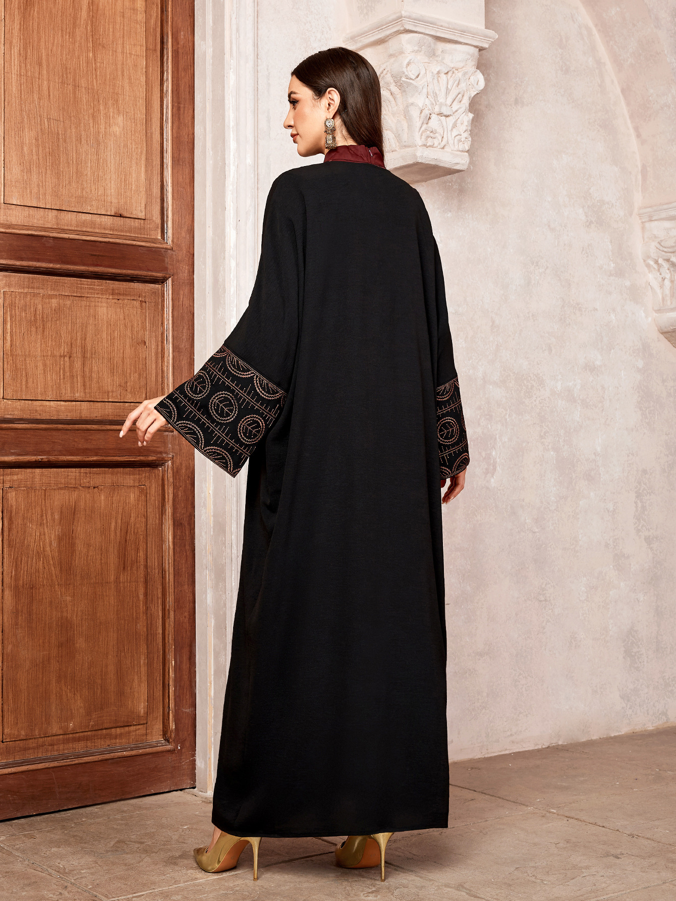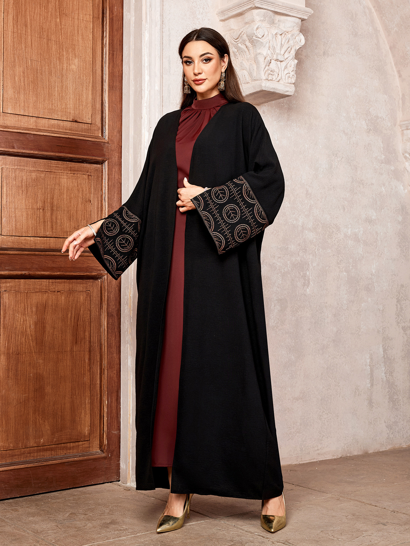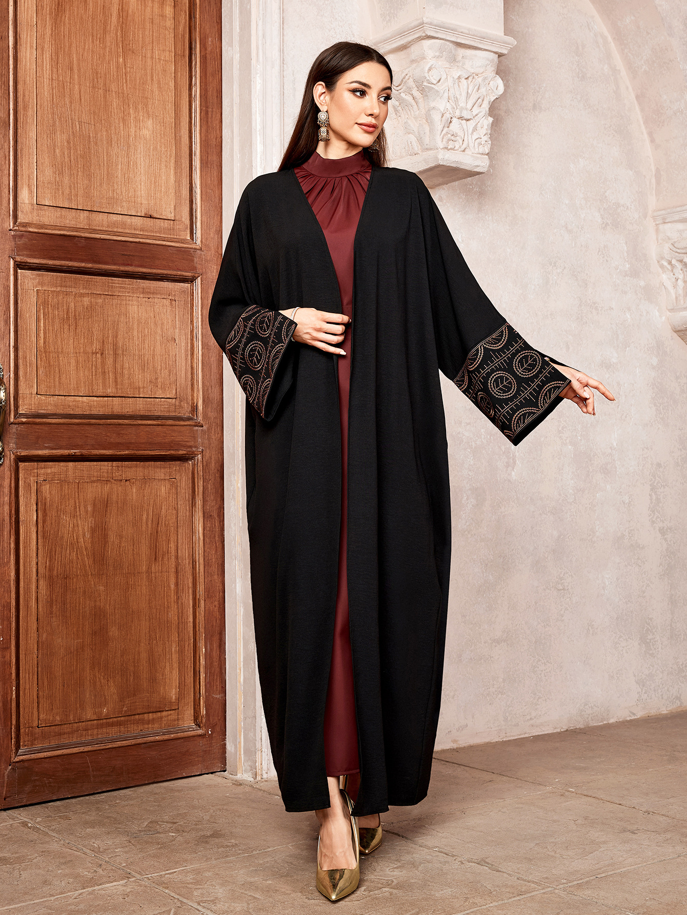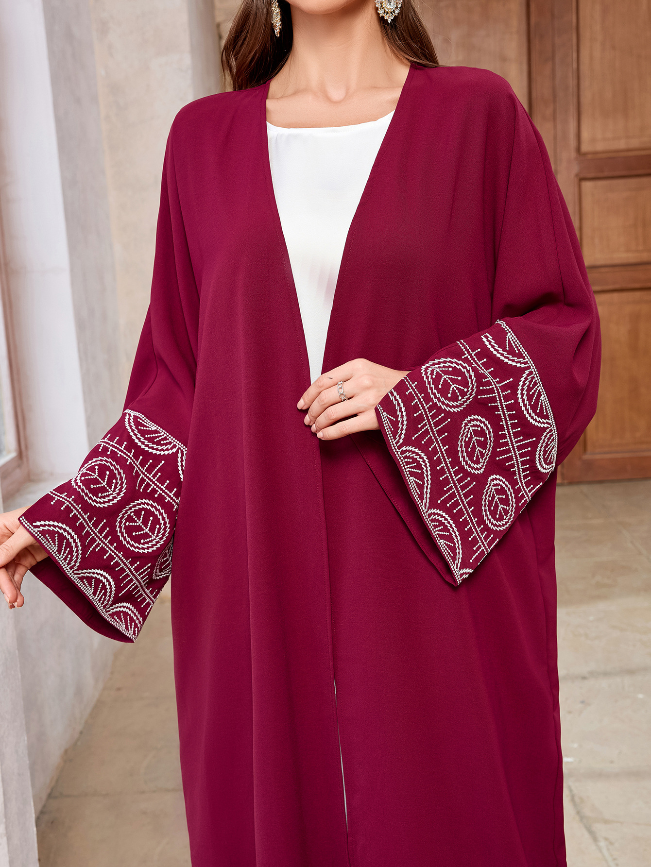Embroidered cardigan robe with bat sleeves