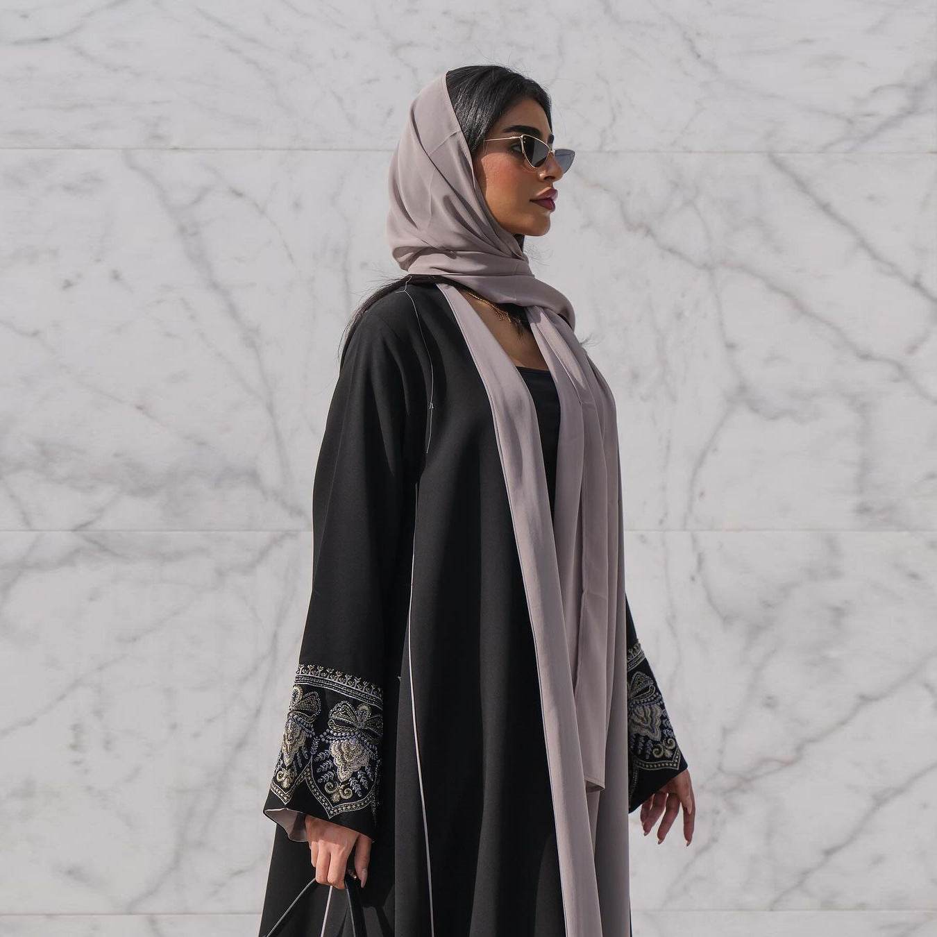 Fashionable Design: Unique embroidered patchwork abaya with trendy ins style.