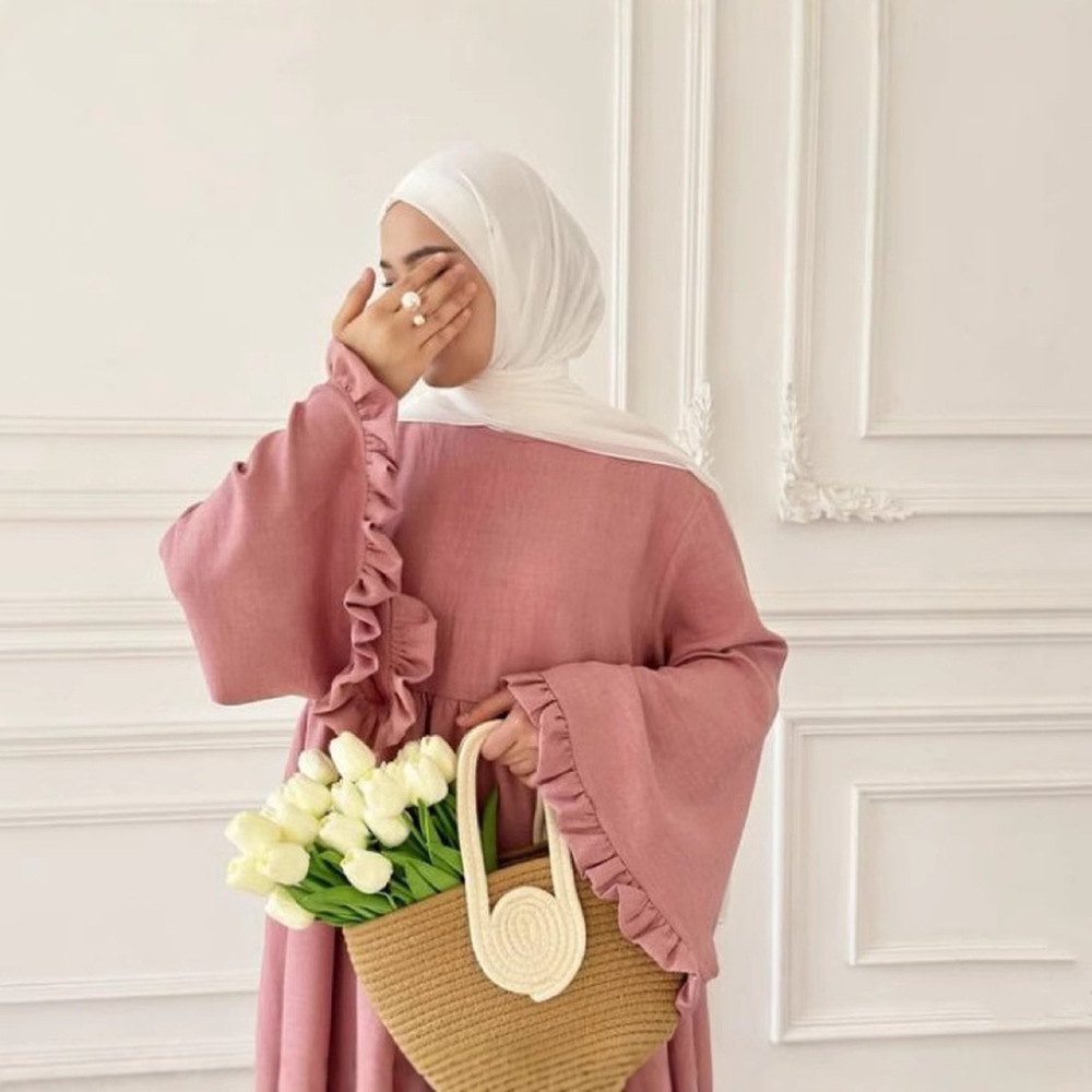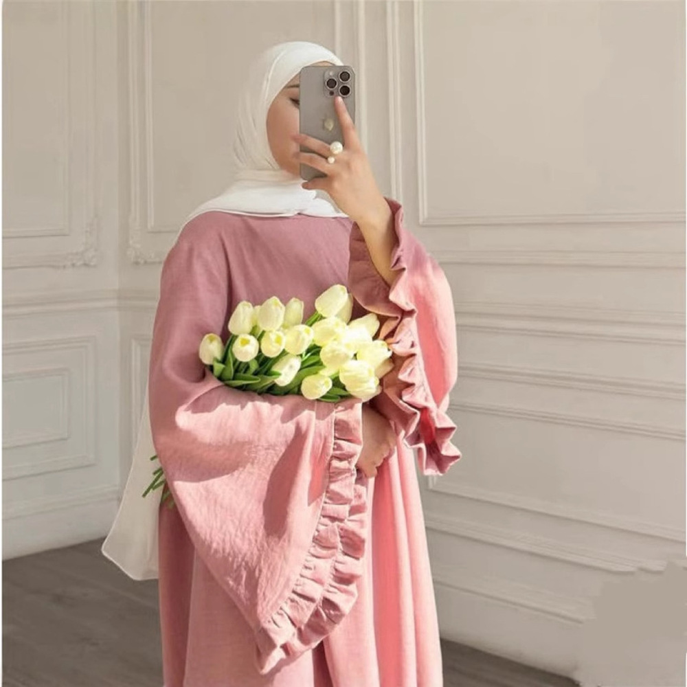 Elegant Design: Fashionable and elegant pure color petal sleeve dress.