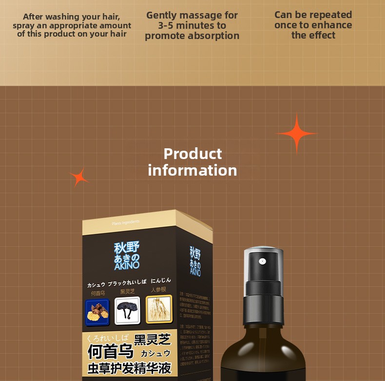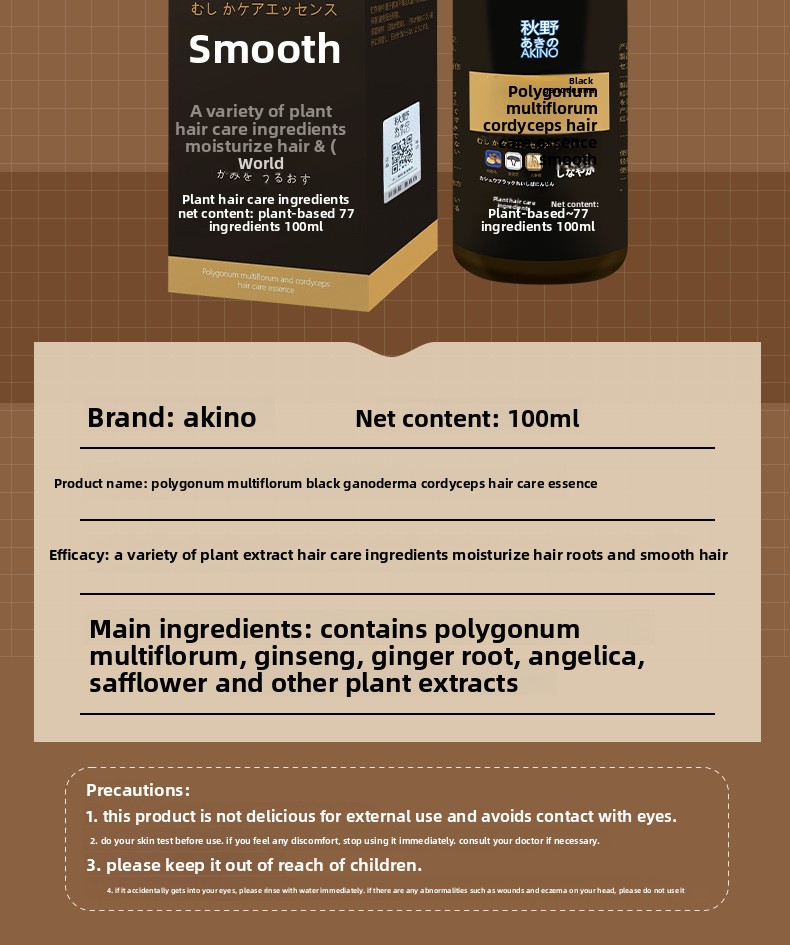 Natural Ingredients: Contains ginseng, polygonum multiflorum, and black ganoderma for nourishing hair.
