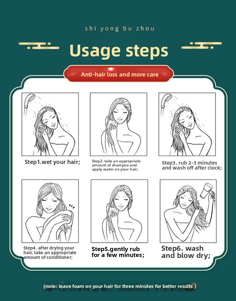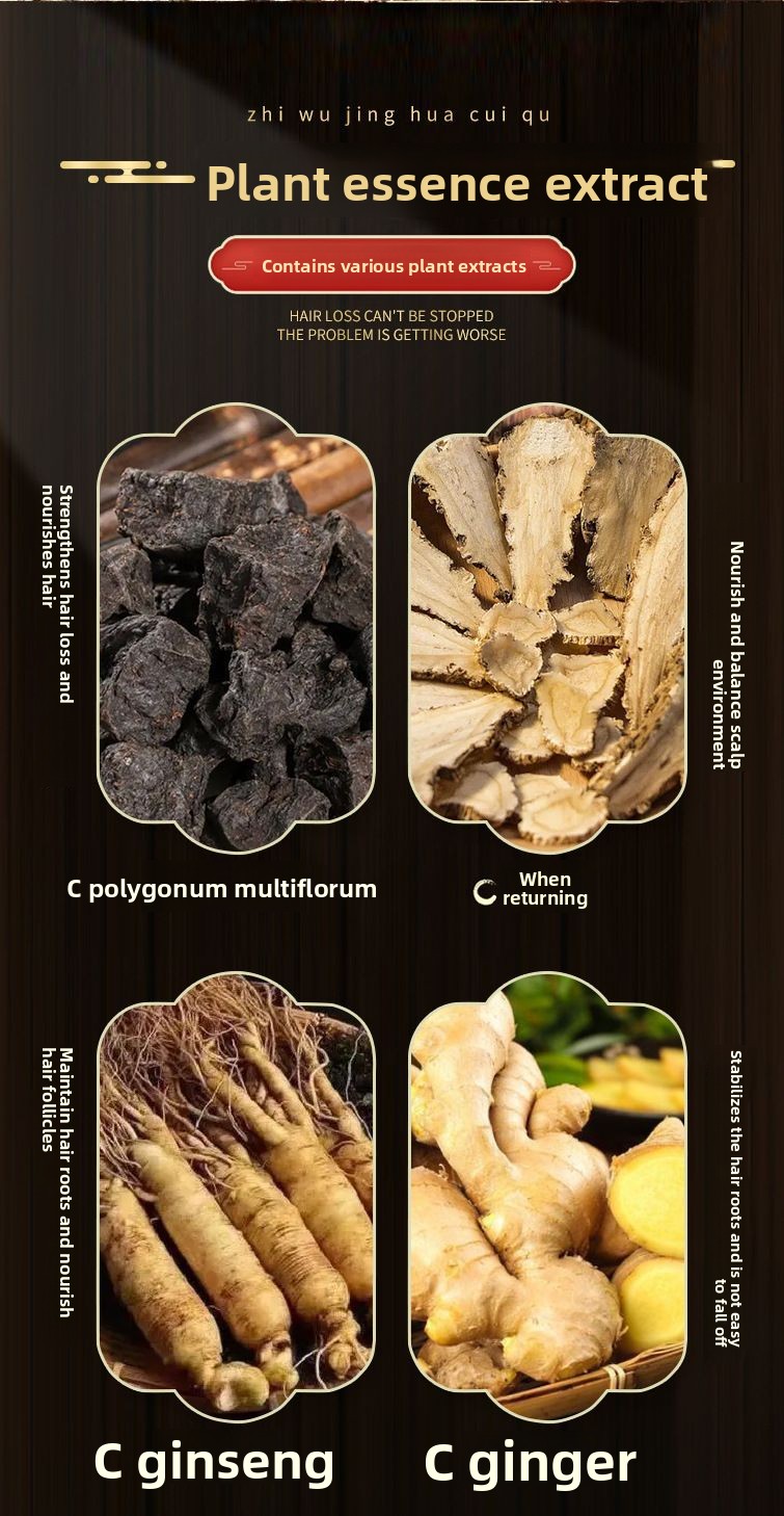 Natural Ingredients: Contains black ganoderma, polygonum multiflorum, and platycladus orientalis leaf for nourishing and strengthening hair.