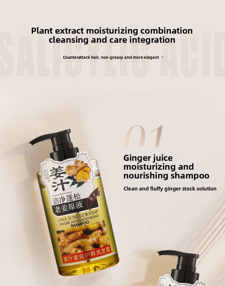 Natural Ginger Extract: Contains ginger extract to nourish hair and scalp, promoting healthy hair growth.
