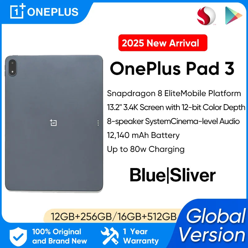 Global Version OnePlus Pad 3 12GB 256GB Tablet Snapdragon 8 Elite 13.2" 144Hz Display 3.4K Resolution Bluetooth 5.4 Android 15