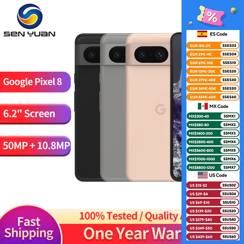 Google Pixel 8 5G 6.2" OLED 8GB RAM 128GB 256GB ROM NFC Google Tensor G3 Octa Core Android Smartphone pixel 8 pixel8 cell Phone