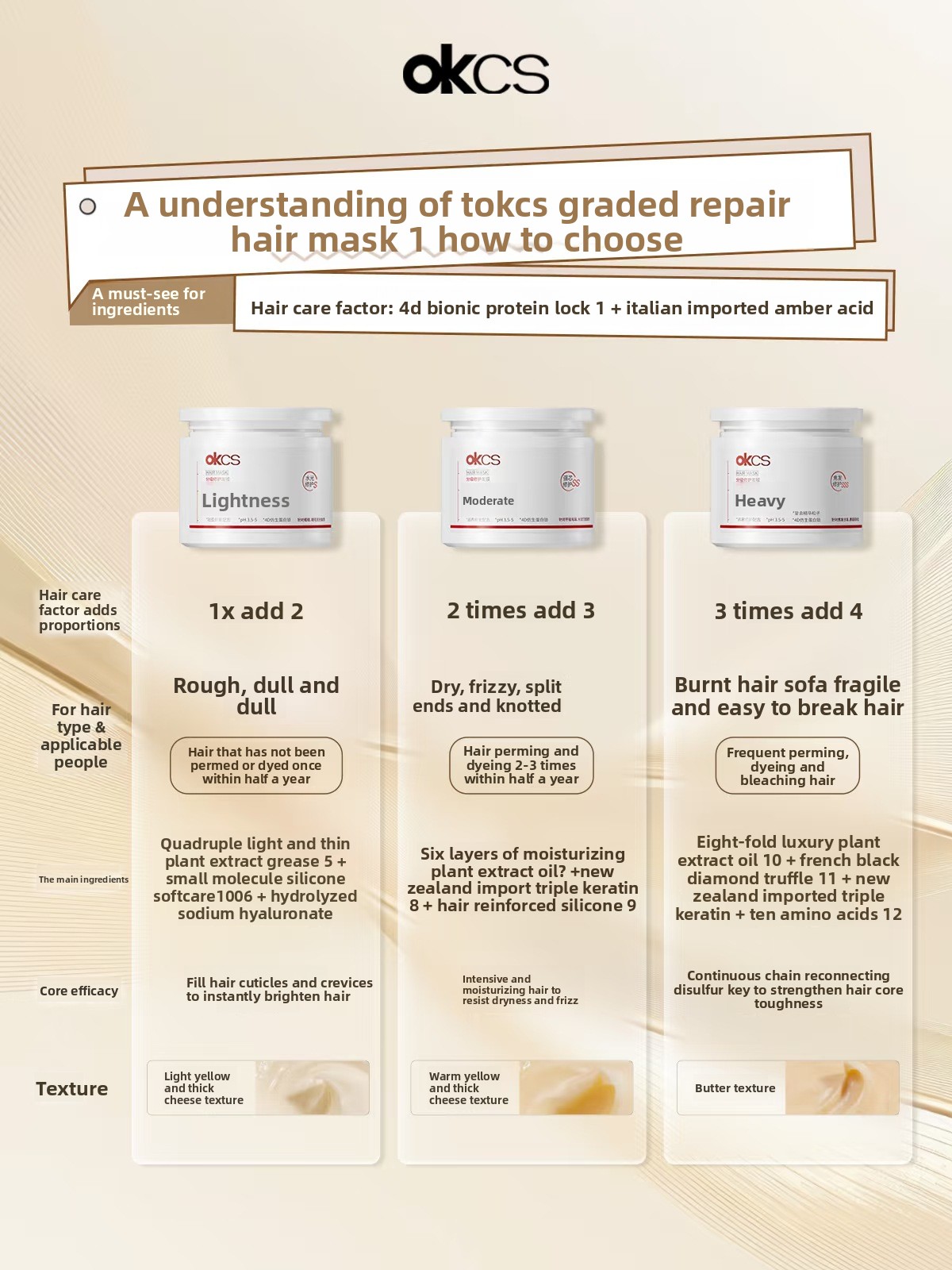 Graded Repair: Targets different hair damage levels (mild, medium, heavy) for customized care.