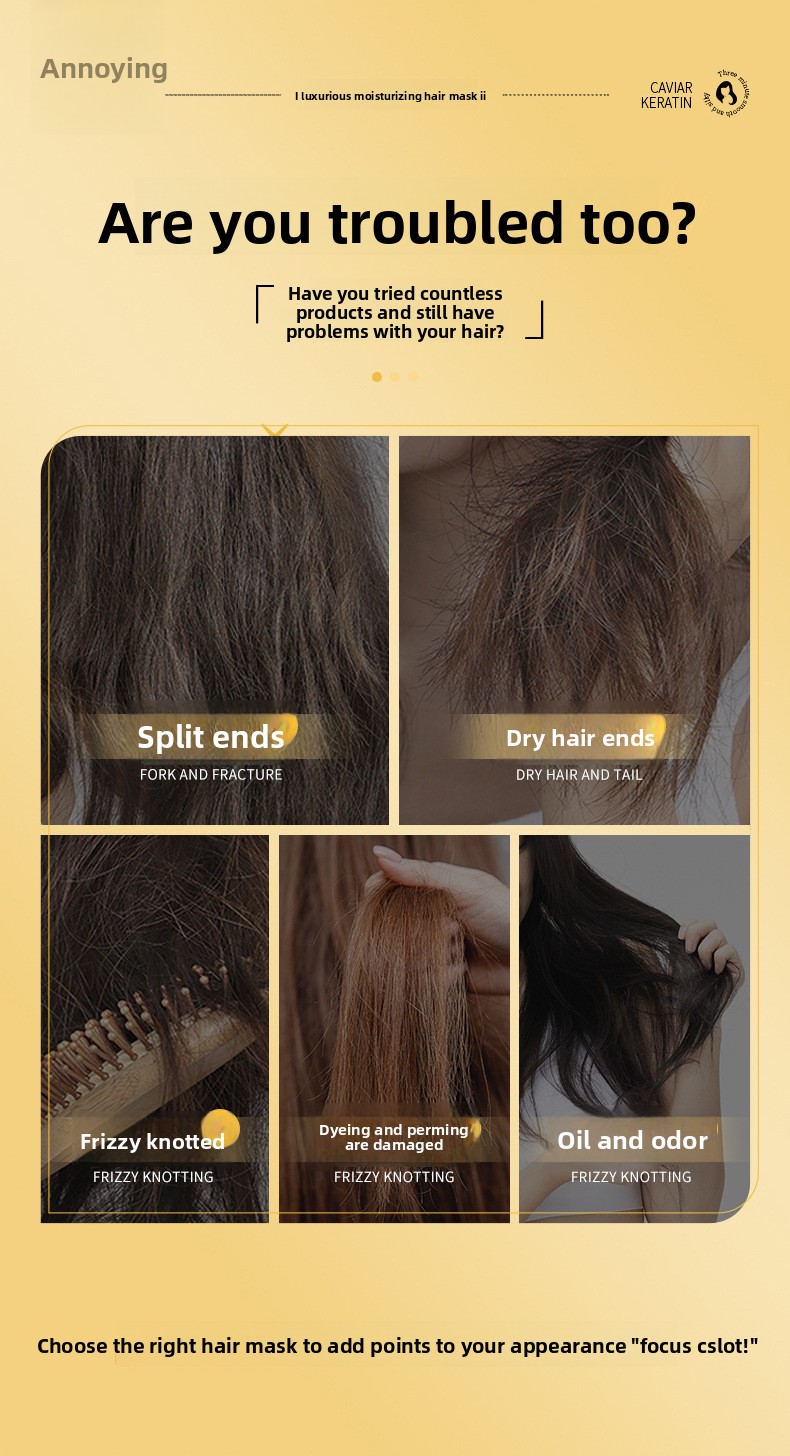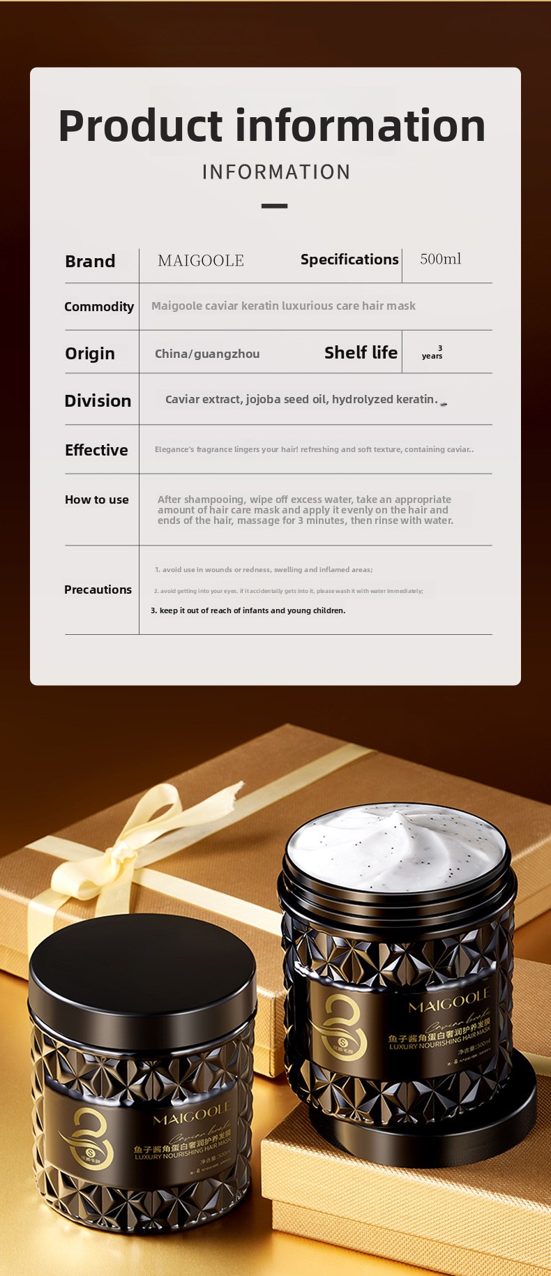 Enriched with premium caviar extract and keratin, this mask deeply penetrates the hair shaft, restoring moisture and vitality.