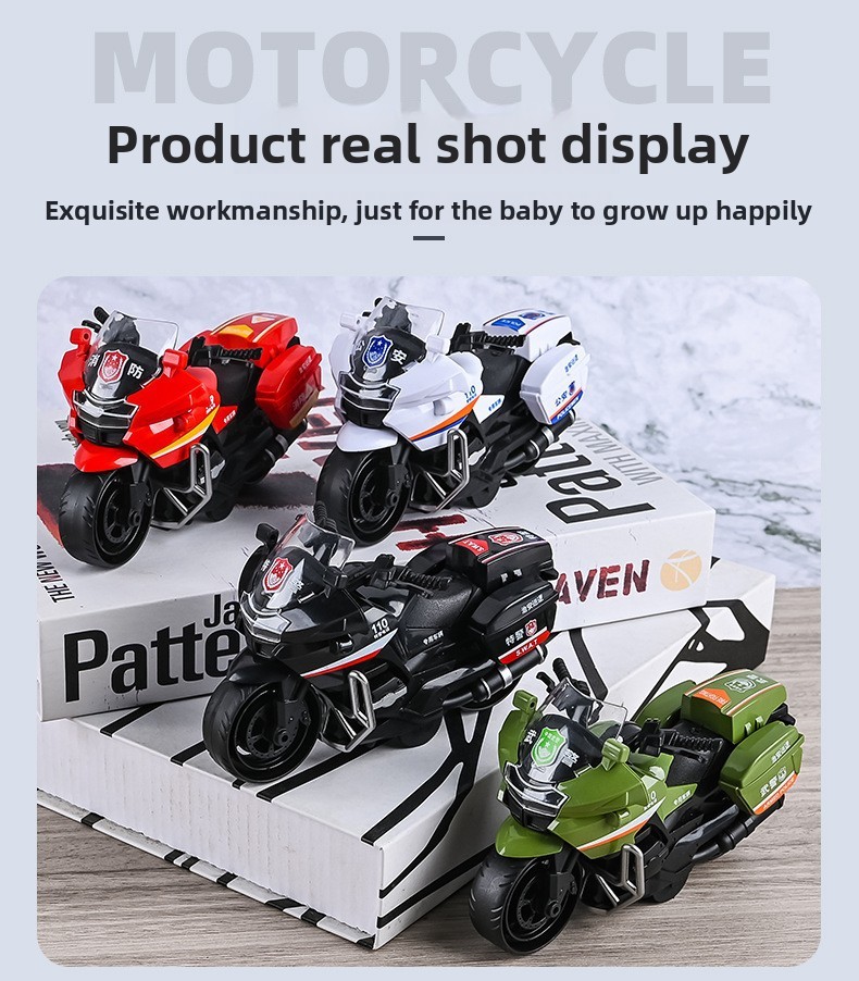 Inertial Motion: Fun and easy-to-play motorcycle toy that moves with inertia.