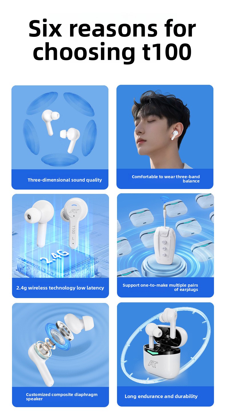 Function: Noise reduction, super long battery life, support music, e-sports low latency