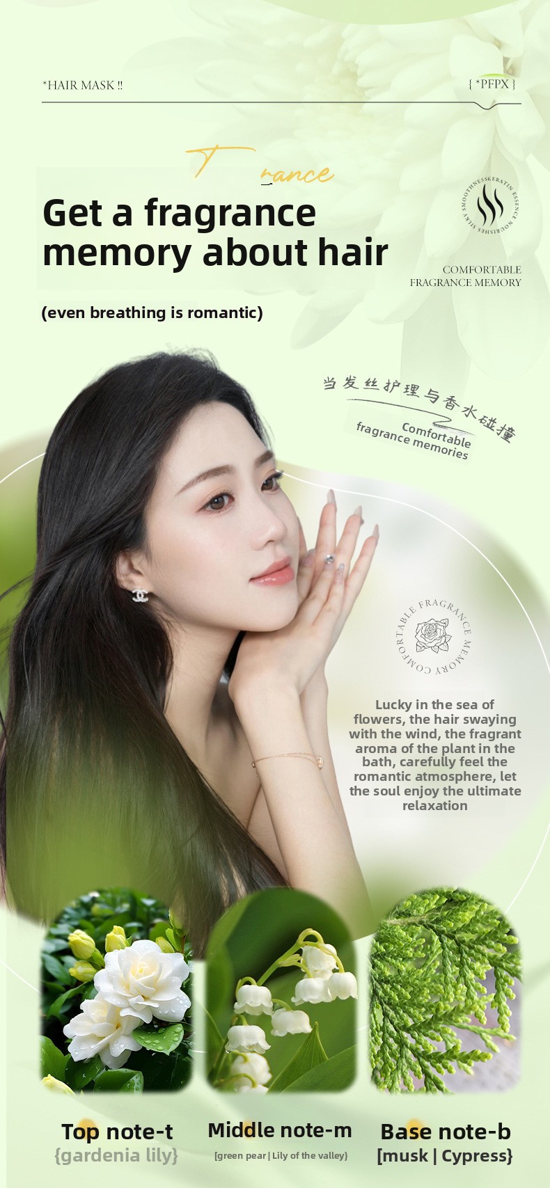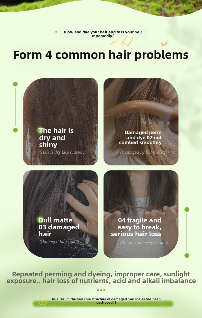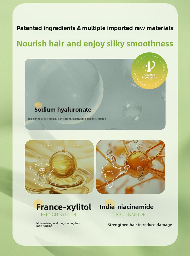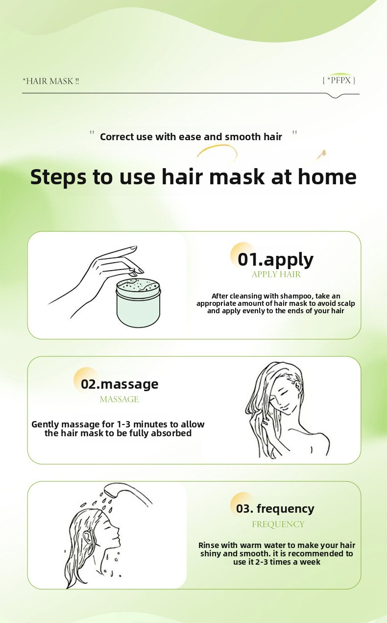 Moisturizing and nourishing, strengthening and preventing hair breakage, alleviating scalp itching, improving frizzy hair, making hair smooth and soft.