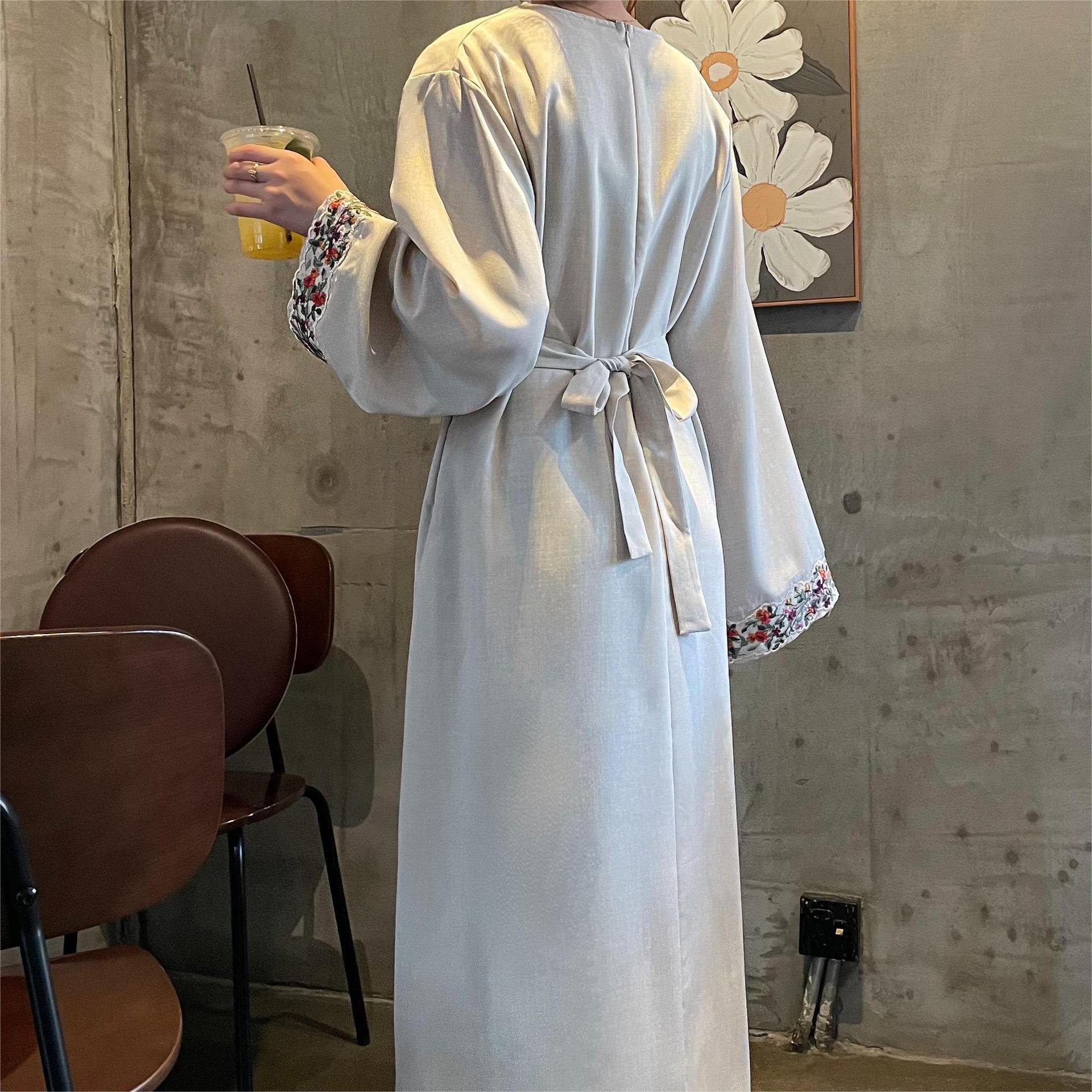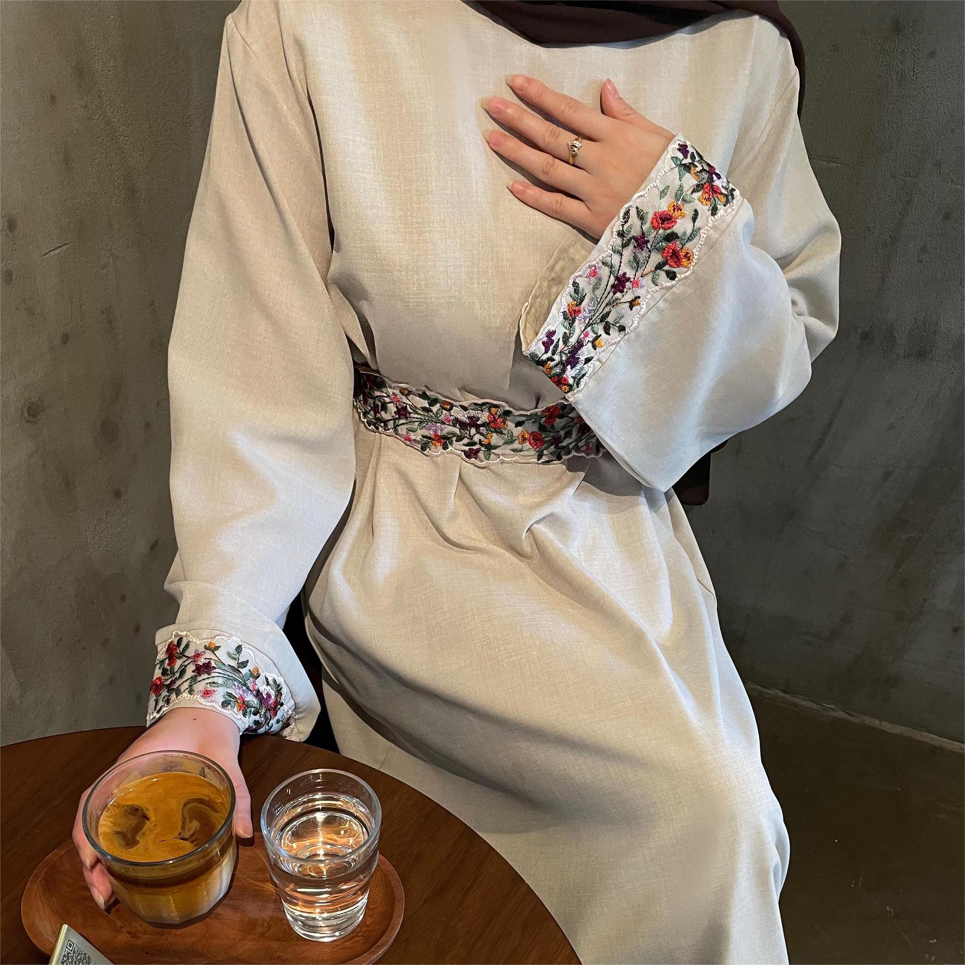 Linen Embroidery: Features delicate floral embroidery for an elegant look.