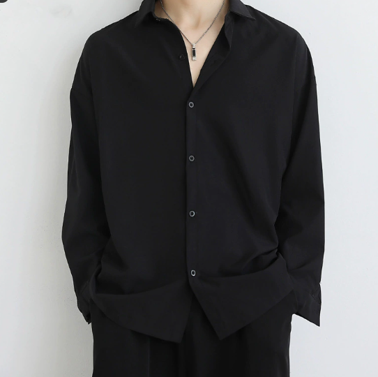 Loose Ice Silk Men's Long Sleeve Shirt - Black/White/Dark Gray