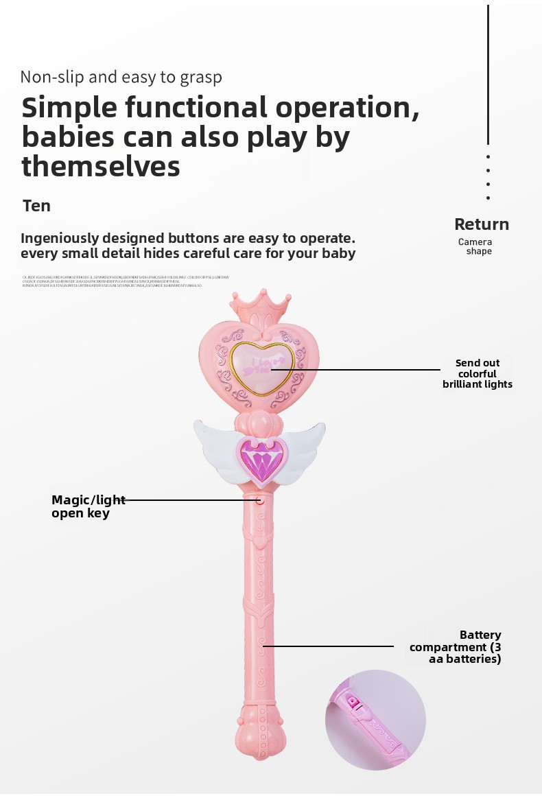 Magic Wand with Lights: Features colorful LED lights for magical effects.