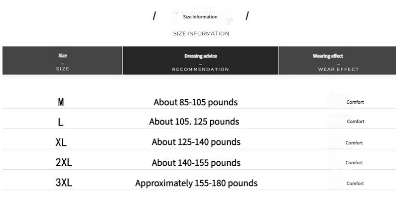 Size: M, L, XL, XXL, XXXL