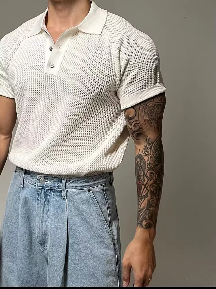 Men's breathable honeycomb-patterned short sleeved top