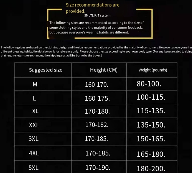 - Multiple Sizes: Wide range of sizes from M to 5XL to fit different body types.