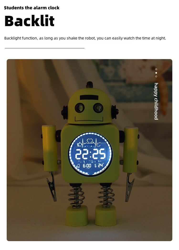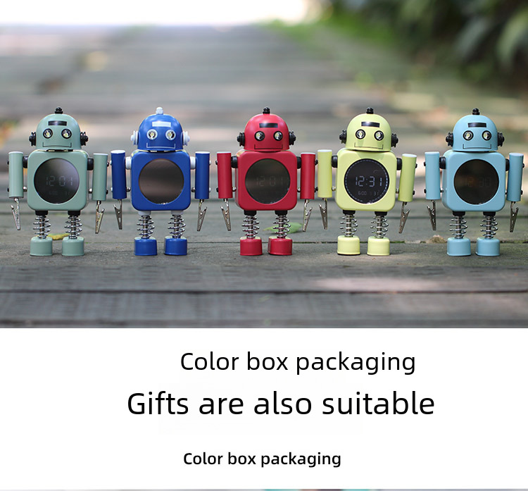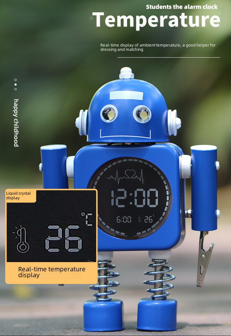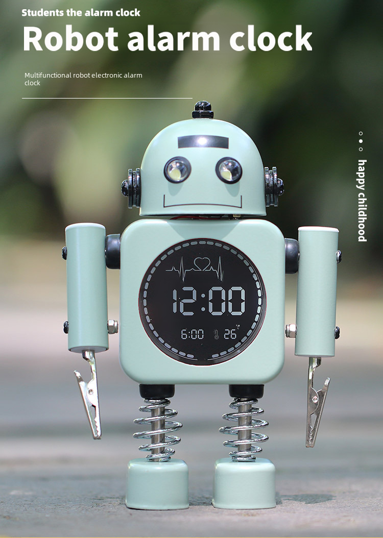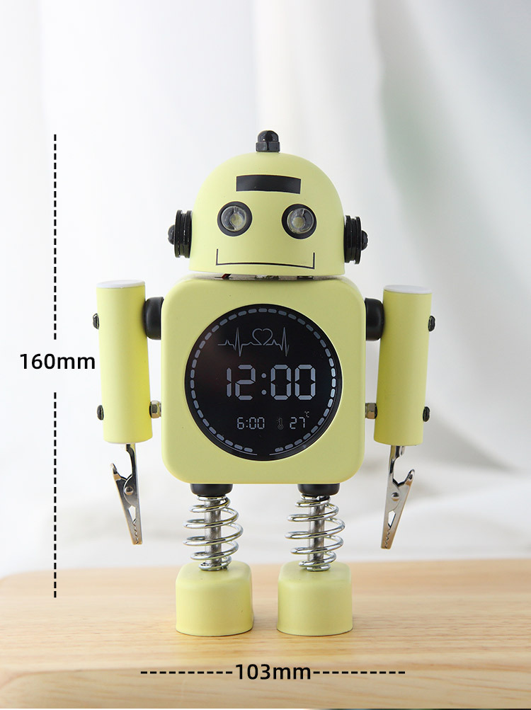 7.This metal robot alarm clock is a great choice for students. It features a silent design, ensuring a quiet environment whether in the dormitory or at home, without disturbing your sleep or study.