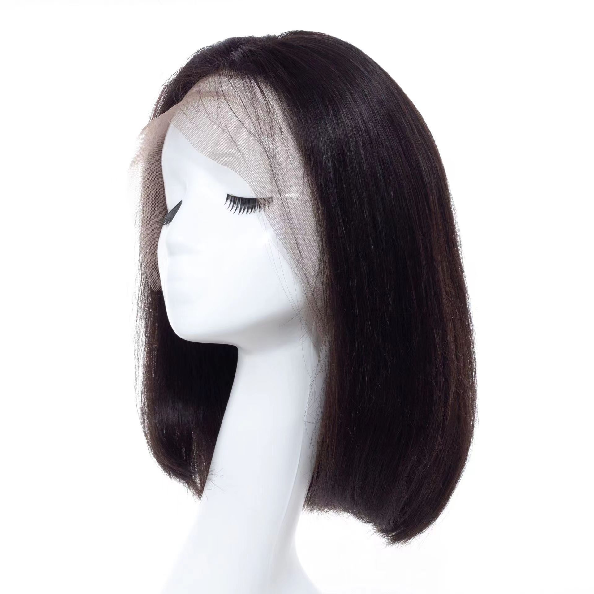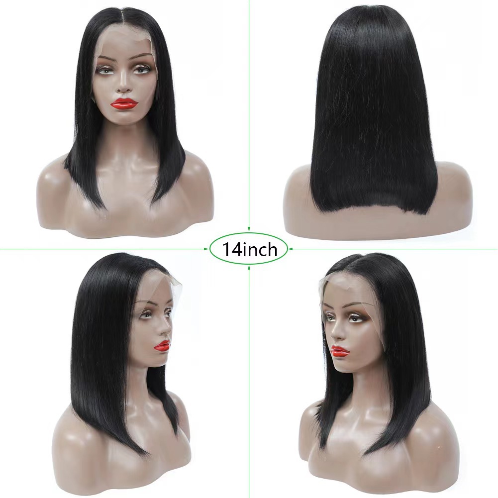 Natural color full real human hair straight wig head cover