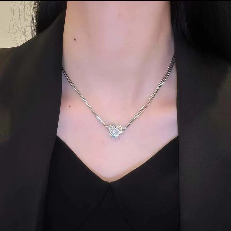 Niche design necklace Diamond Love magnet necklace multi-layer snake bone chain heart necklace temperament clavicle chain