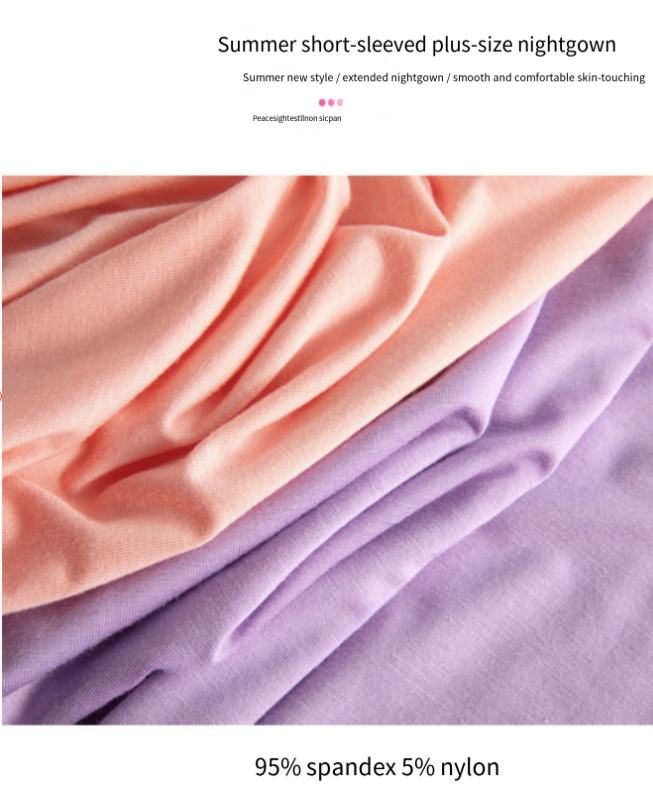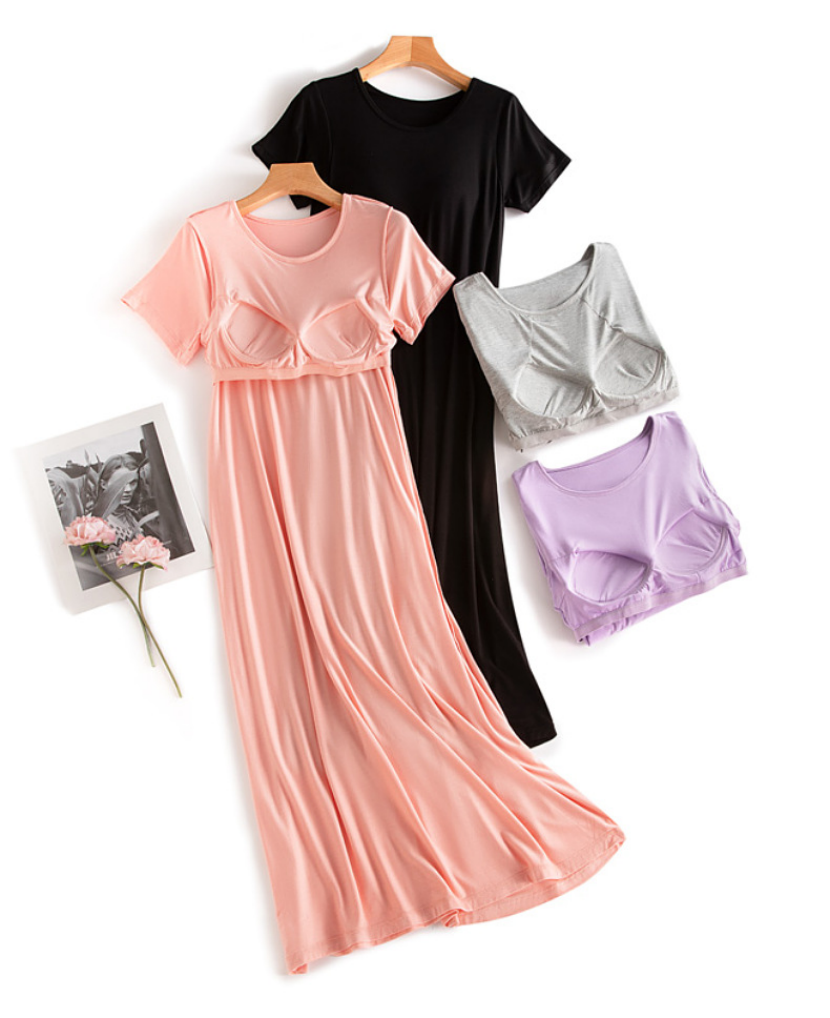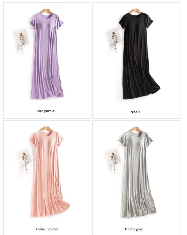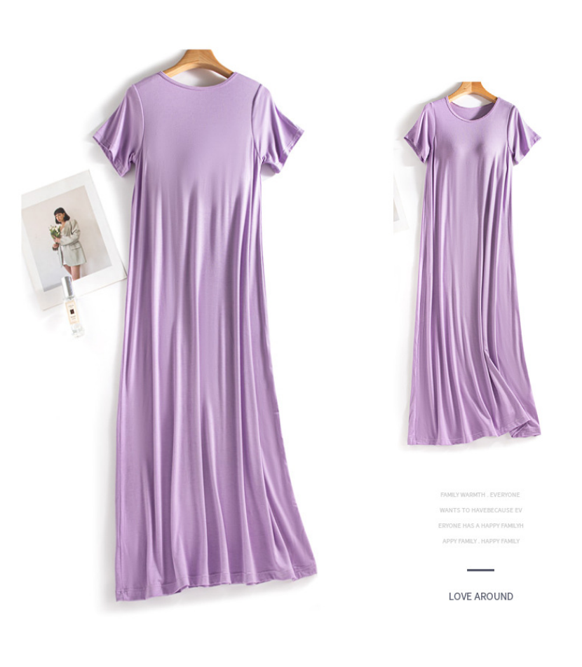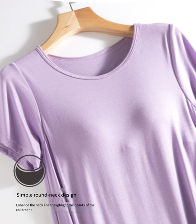 One-piece, frameless, bras free, long casual short-sleeved nightgown
