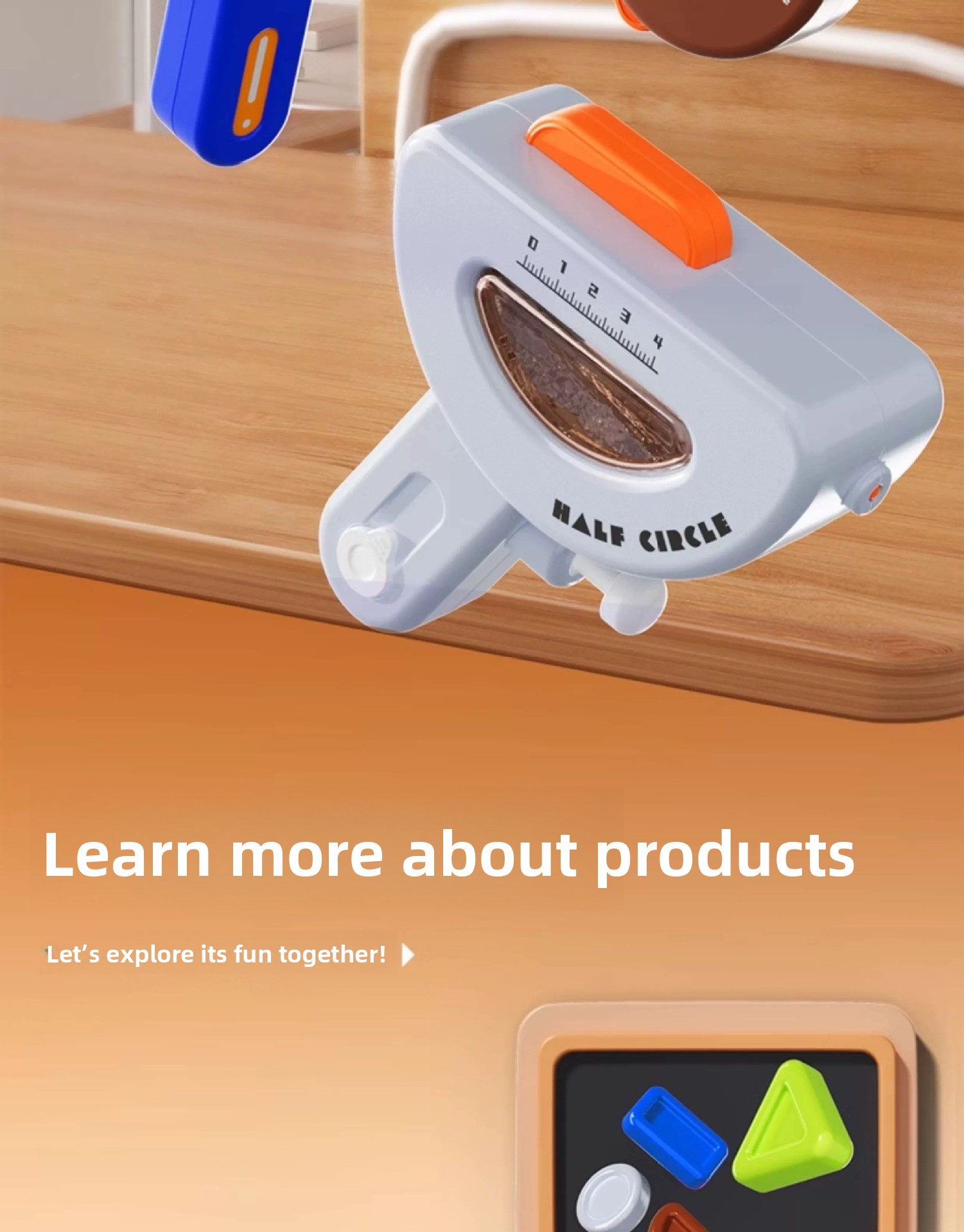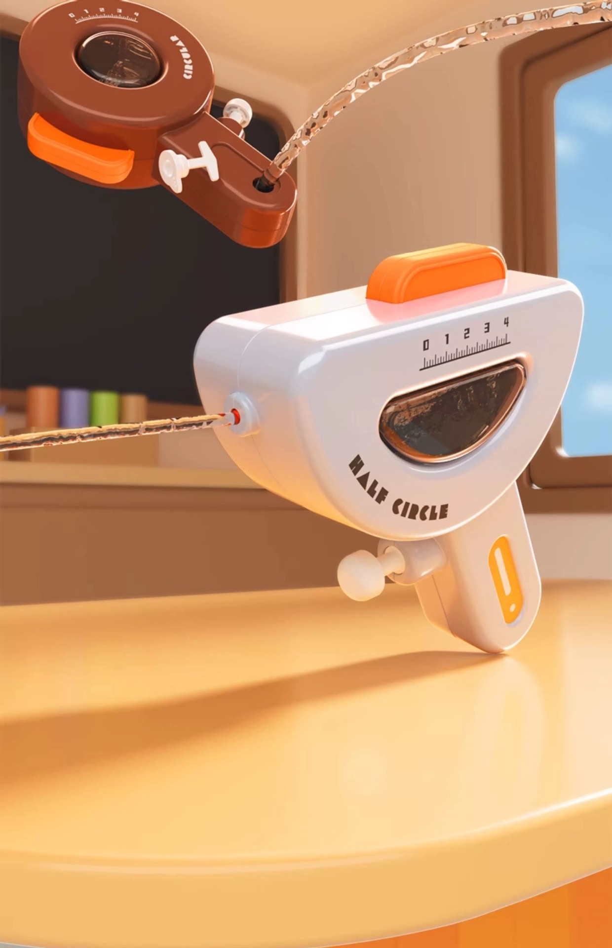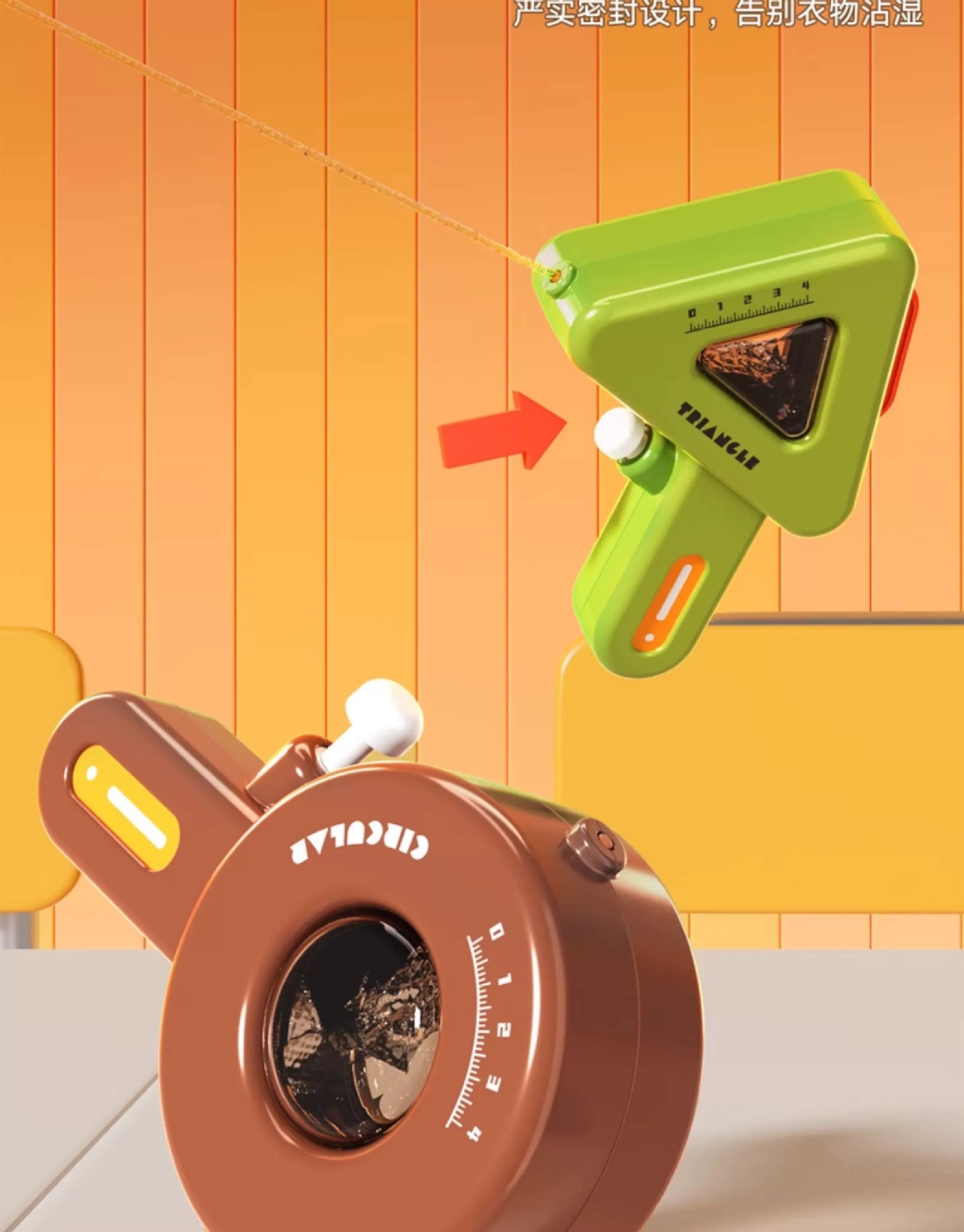 Color: Green (triangular ruler water gun), Brown (round ruler water gun), White (semi-circle water gun), Blue (ruler water gun)