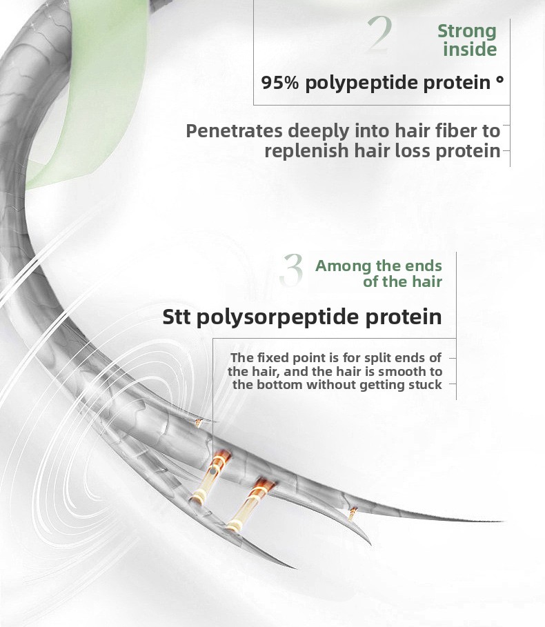 Powerful Ingredient: Peptides help to repair damaged hair fibers, while keratin fills in the gaps in the hair, strengthening the hair structure and making the hair more resilient.