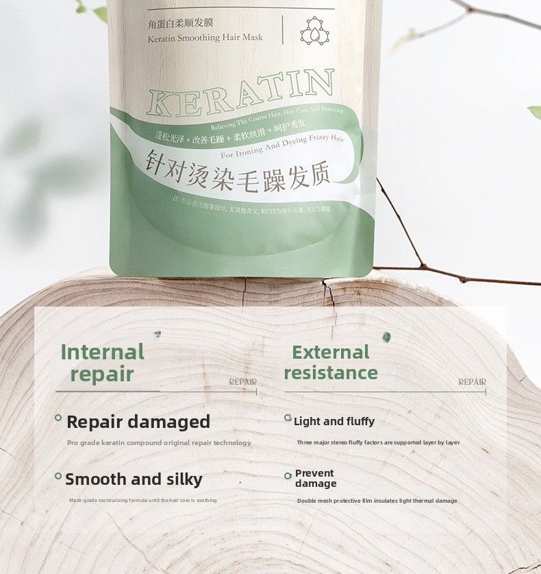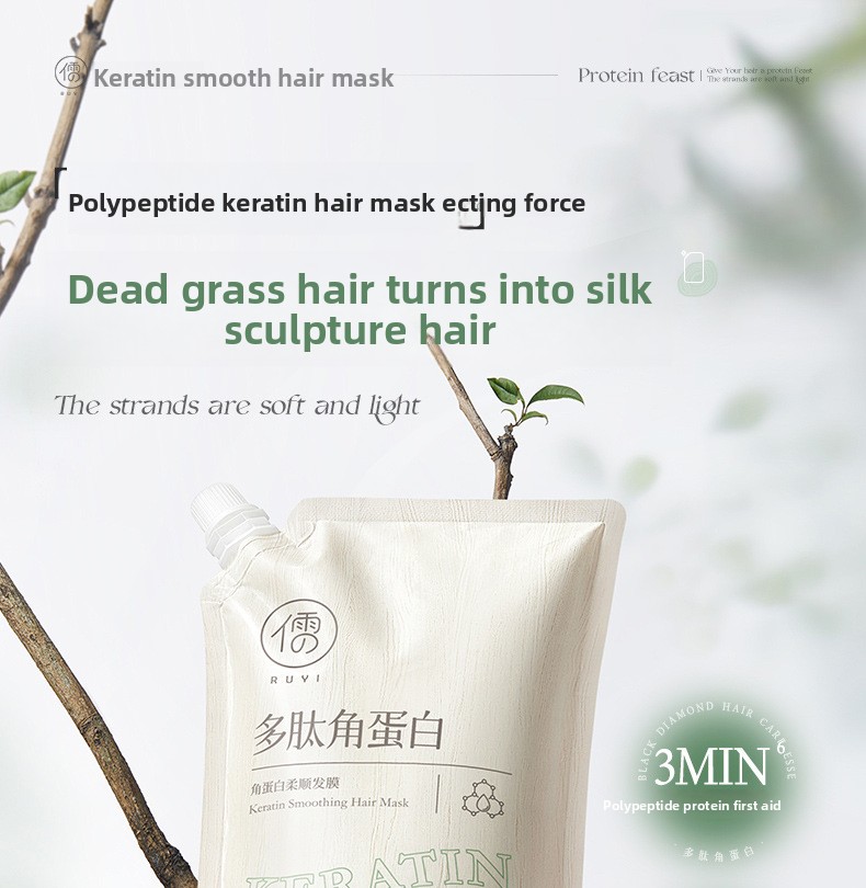 Keratin Smooth Hair Mask 500ml x 2 + Bullet Hair Mask 6ml x 3, Ruyi Keratin Smooth Hair Mask, Ruyi Moisturizing (Smooth and Nourishing) Bullet Hair Mask 12ml x 8 (in boxes)
