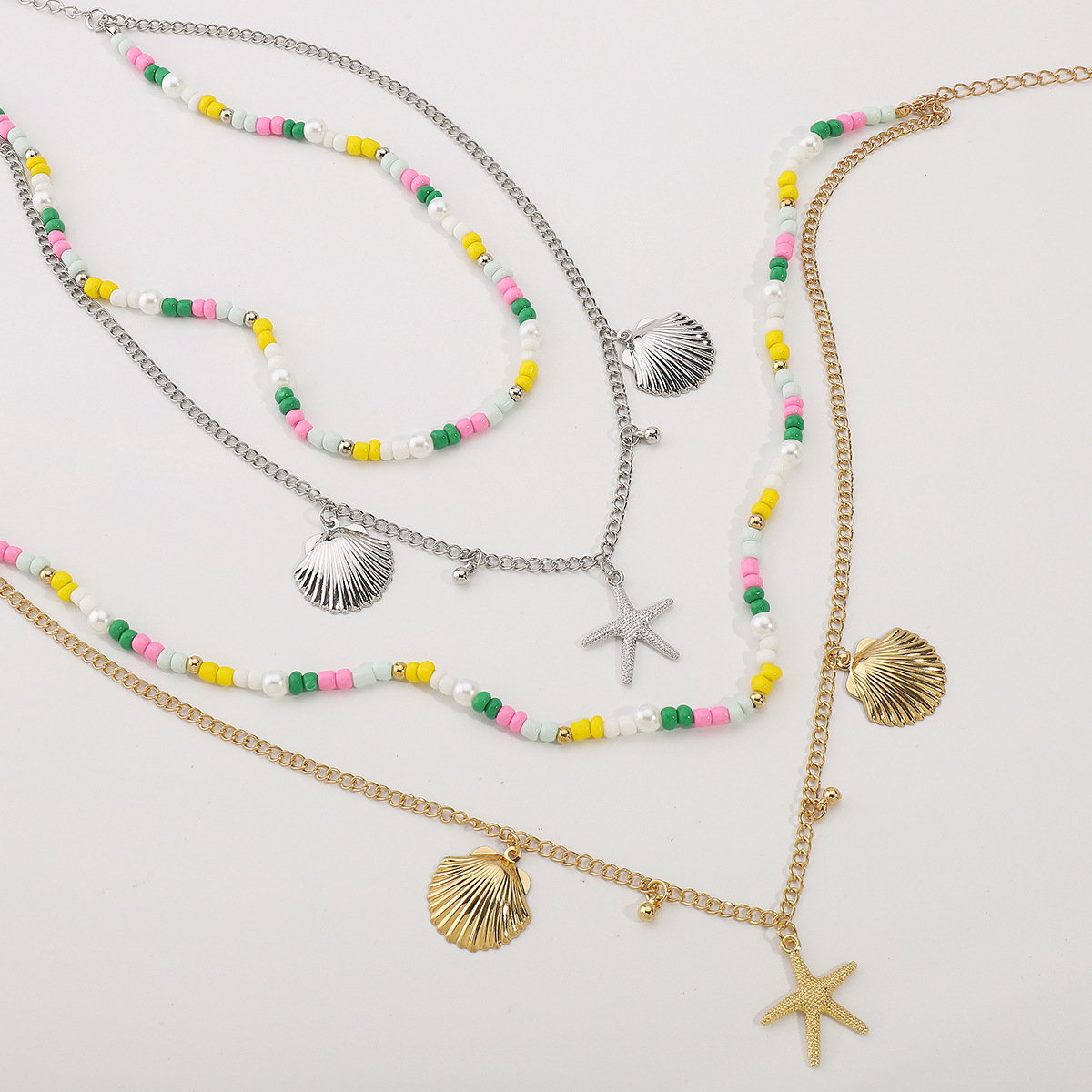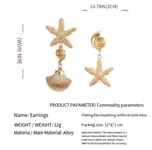2.The conch and starfish pendant necklace and earrings set showcases a unique personality.