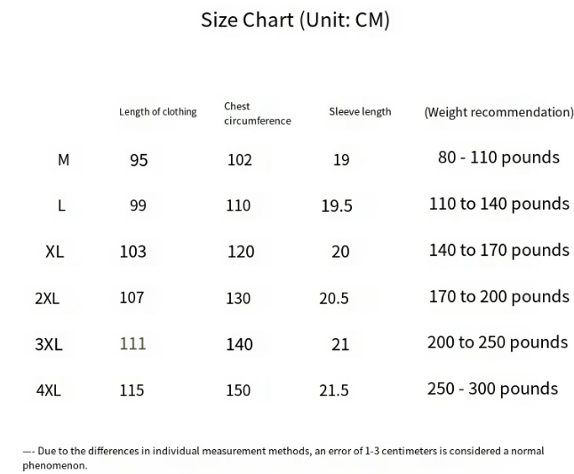 - Plus Size Options: Available in sizes up to 4XL, suitable for weights up to 300 pounds (150 kg).