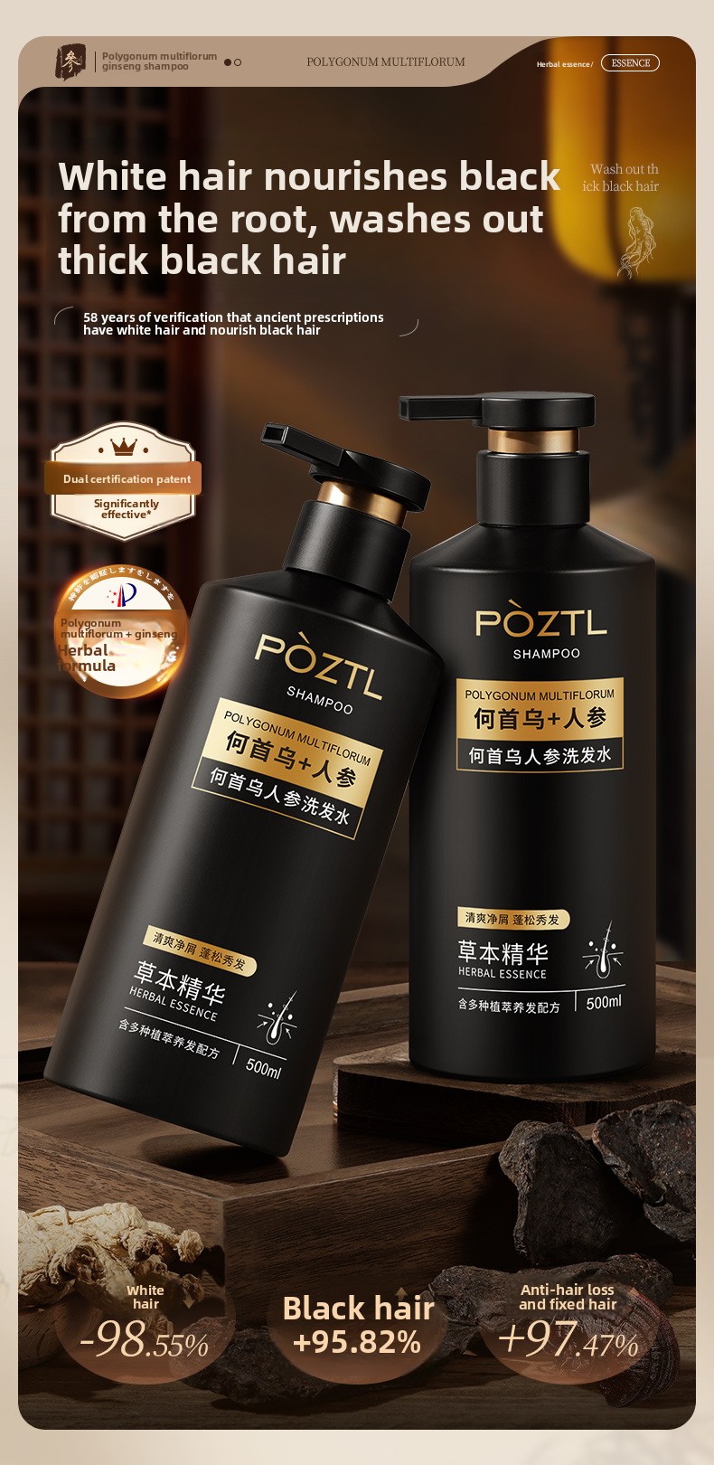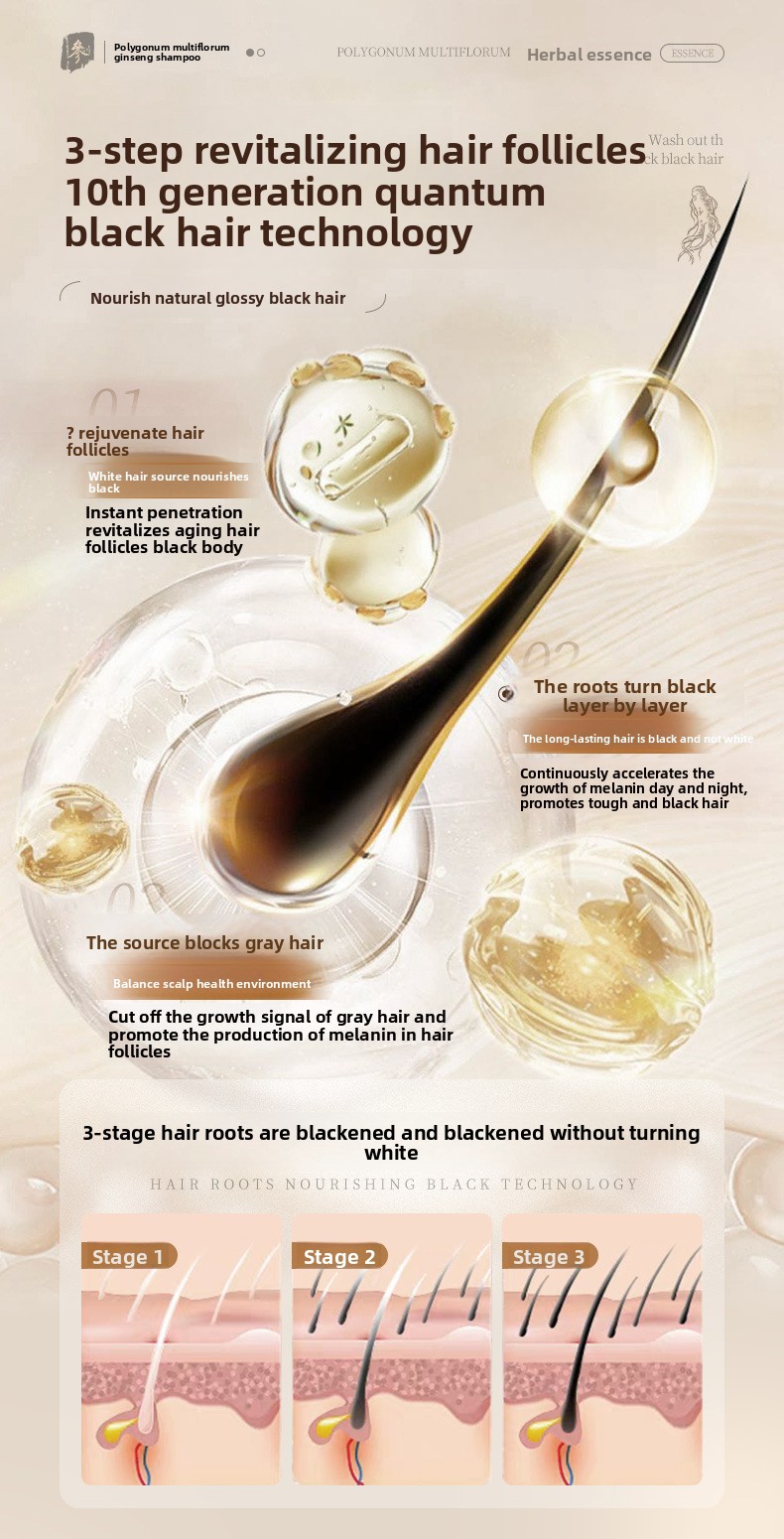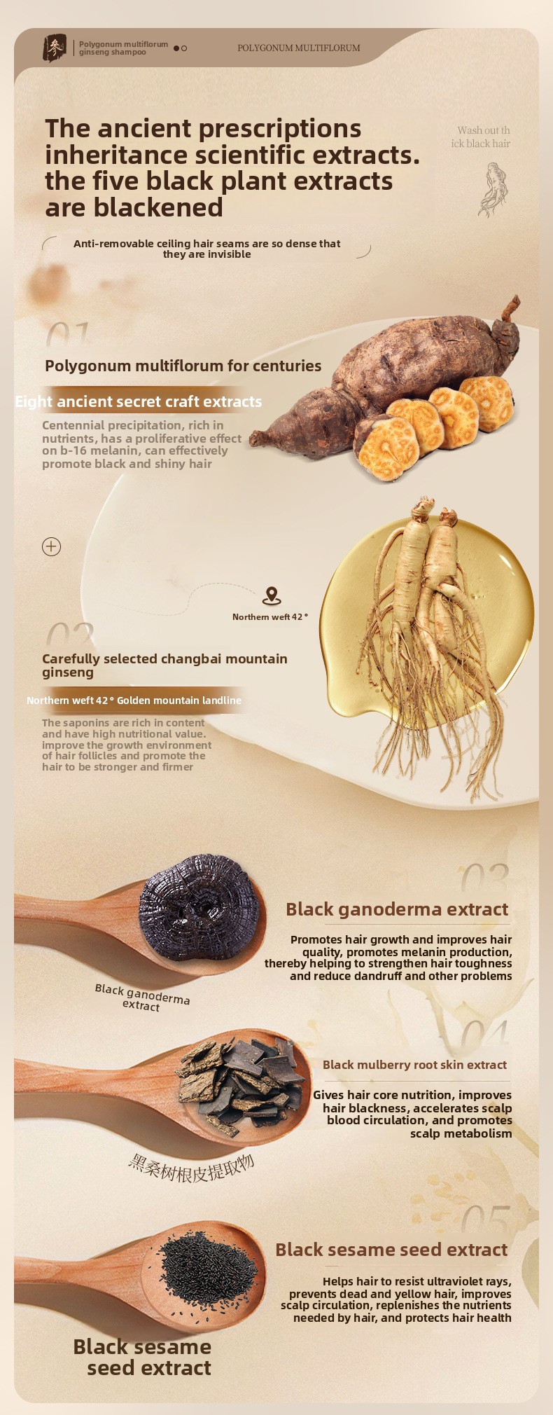 Pure Plant Formula: Made with natural ingredients like Polygonum Multiflorum (He Shou Wu) and ginseng for hair nourishment.