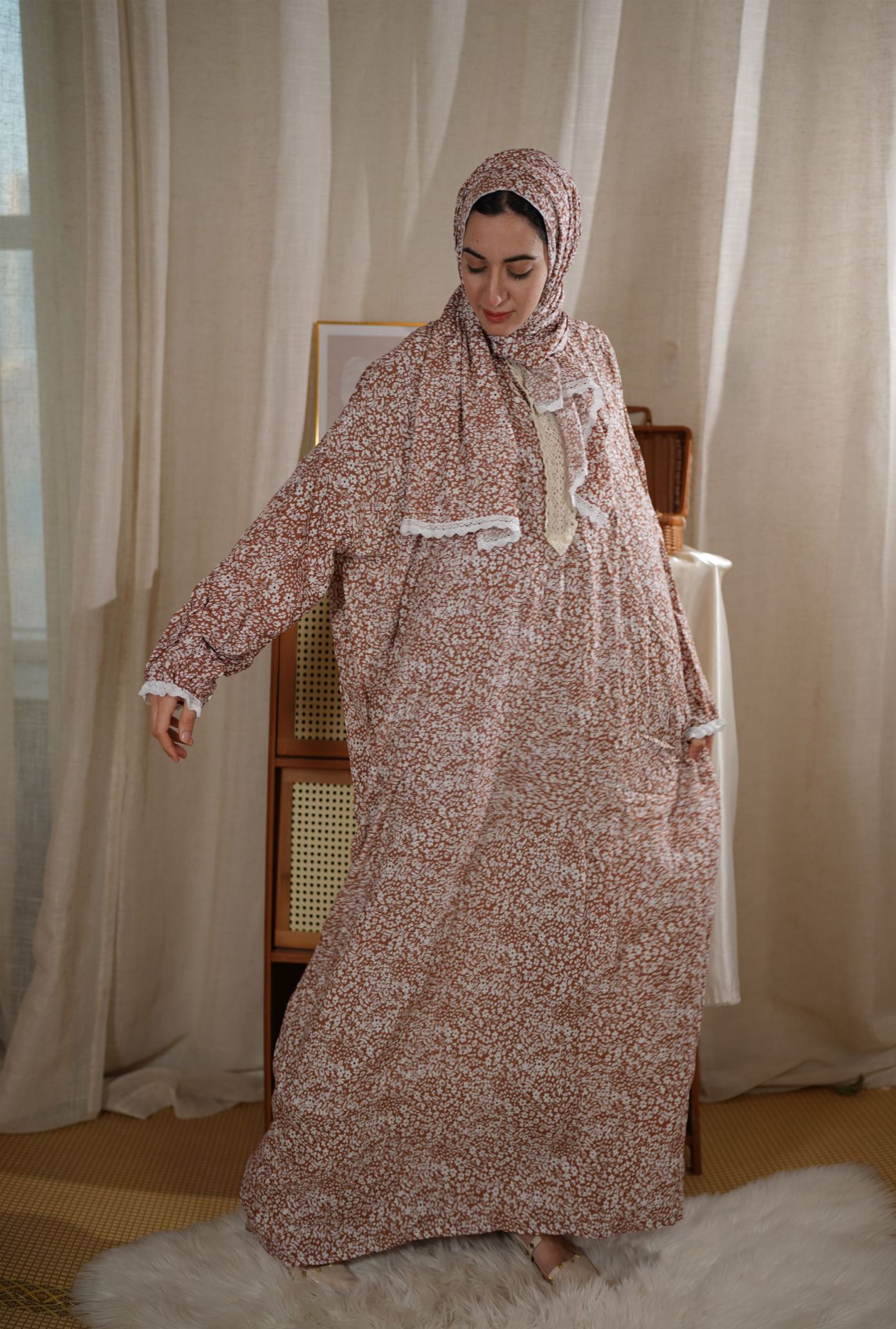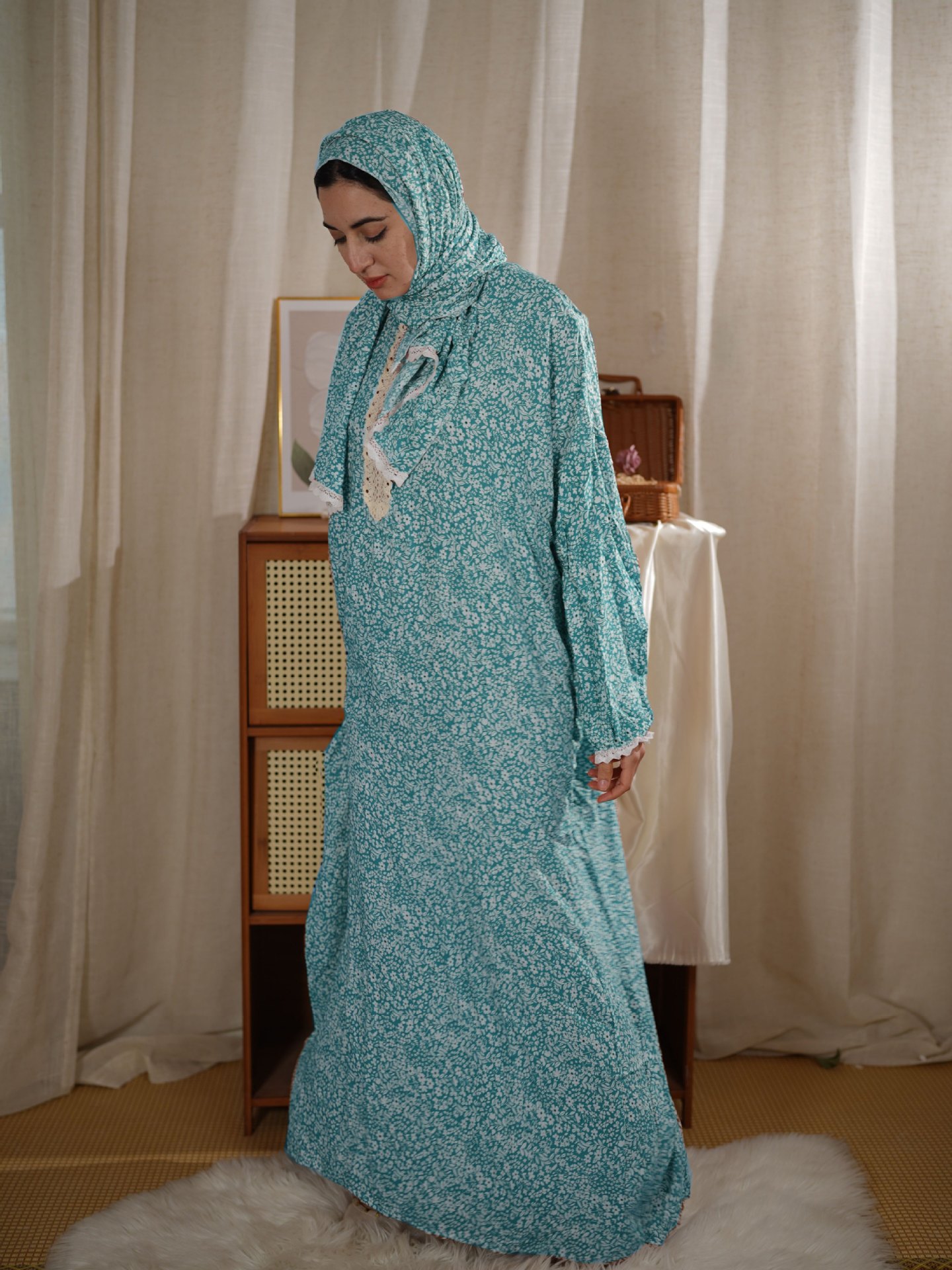 One-piece Design: Integrated scarf and prayer robe for convenience and modest wear.