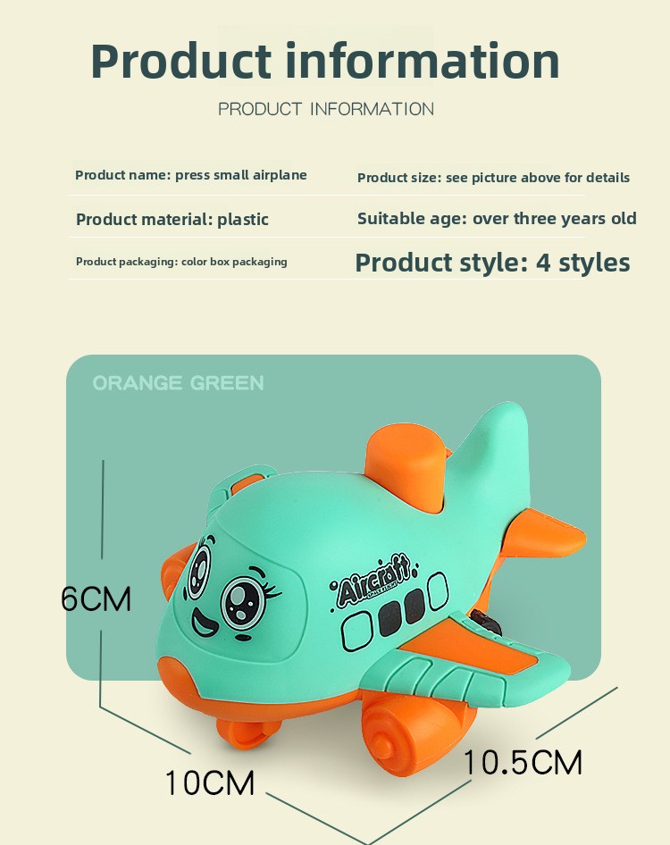 Press-and-Go Cartoon Airplane Inertia Toy Car