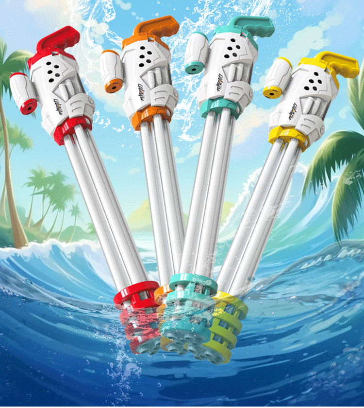 Multiple Designs: Available in various styles like Gatling, Barrett, and rocket water cannons.