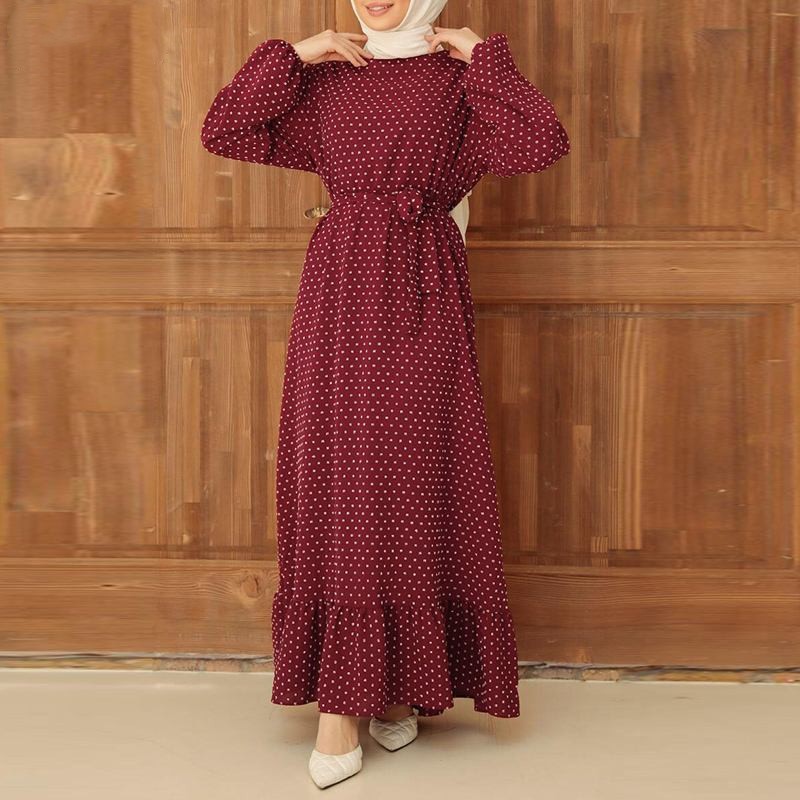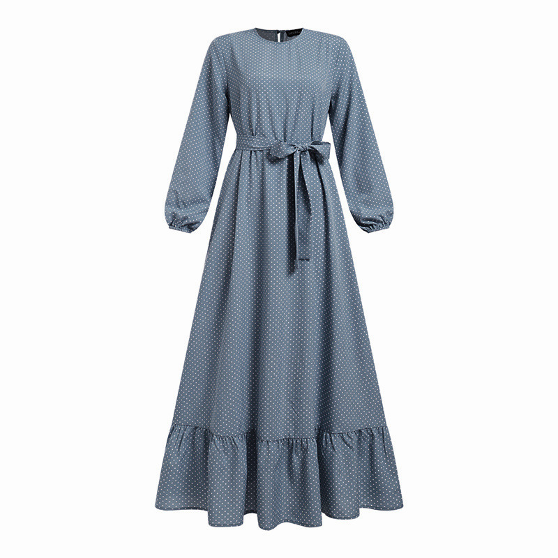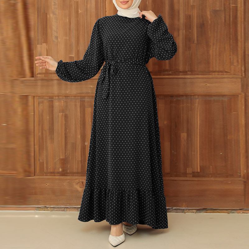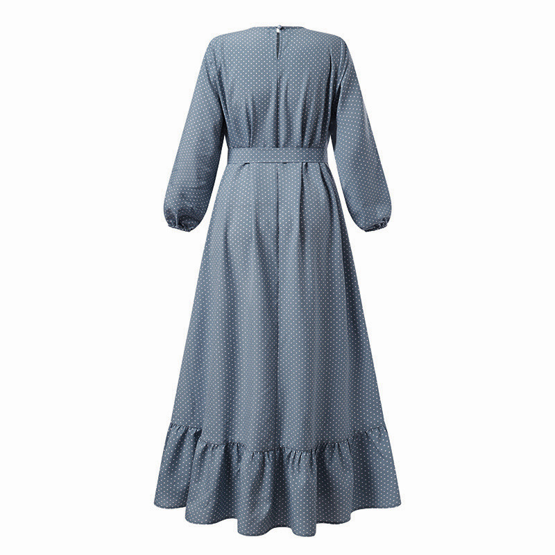 Retro Polka Dot Long Sleeve Ruffled Hem Dress