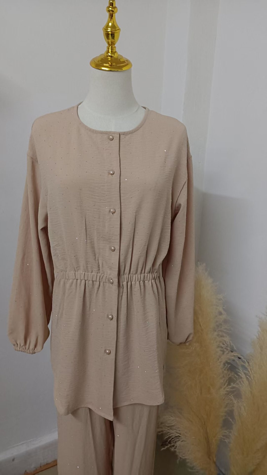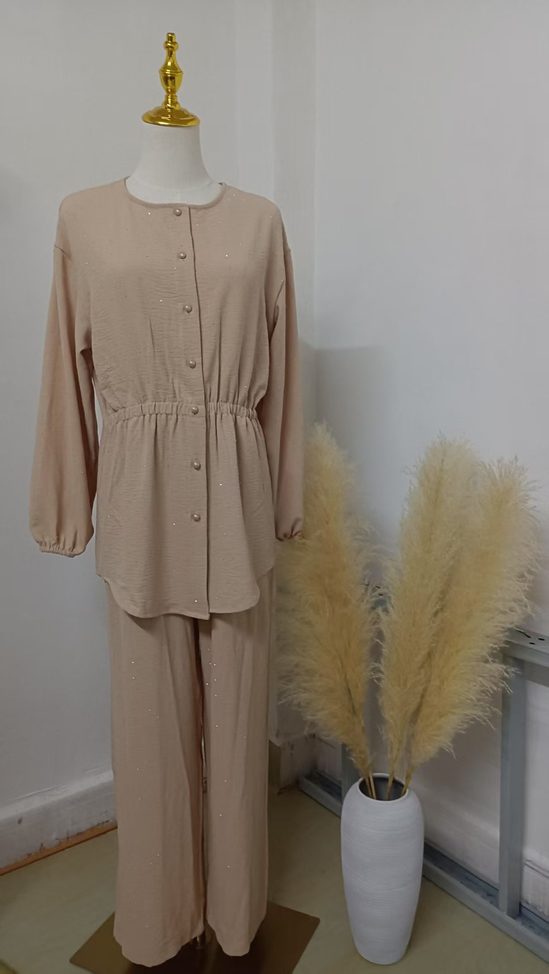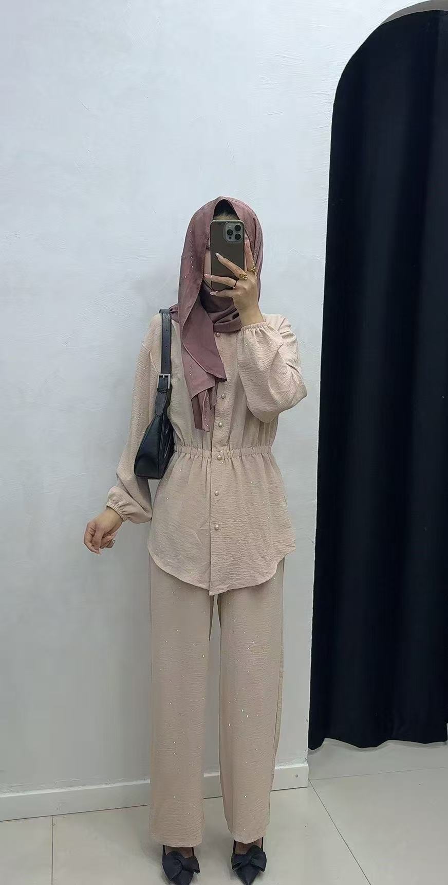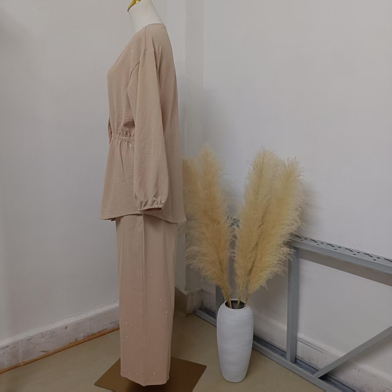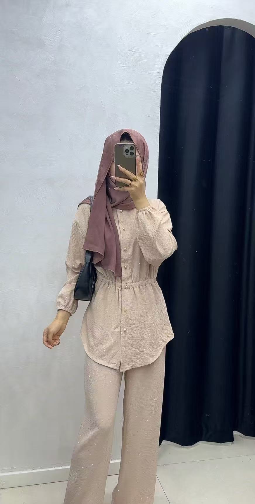 Two-piece set: Includes a shirt top and wide-leg pants for a complete look.